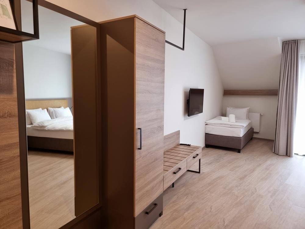 Dvoulůžkové pokoje s balkonem a výhledem a možností přistýlky se sociálním zařízením (wc, umyvadlo a sprchový kout), minibarem, TV, rychlovarnu kovnicí. Bezplatné Wifi. K pokoji přiléhá balkón o velikosti 6m2.Studio Premium s balkénem a výhledem , vybavenou kuchyňskou linku propojenou s obývacím pokojem, stavebně oddělenou ložnici a vlastní sociální zařízení (wc, umyvadlo, sprchový kout). V obývací části pokoje je k dispozici rozkládací gauč, stolek a TV s internetovým připojením. Apartmán SUPERIOR je vybavený 2 stavebně oddělenými ložnicemi a vlastním sociálním zařízením (každá ložnice má vlastní koupelnu vždy wc, umyvadlo, sprchový kout) a obývacím pokojem propojeným s kuchyňským koutem. V obývací části se nachází rozkládací gauč (s možností rozložení pro 5. + 6.hosta apartmánu), stolek a TV s internetovým připojením. V kuchyňské části je k dispozici plně vybavená kuchyňská linka včetně mycích prostředků, varné desky, mikrovlnné trouby, ledničky a jídelní stůl + 4 židle. Ke každému apartmánu náleží balkón s vchodem z obývacího pokoje a z jedné ložnice