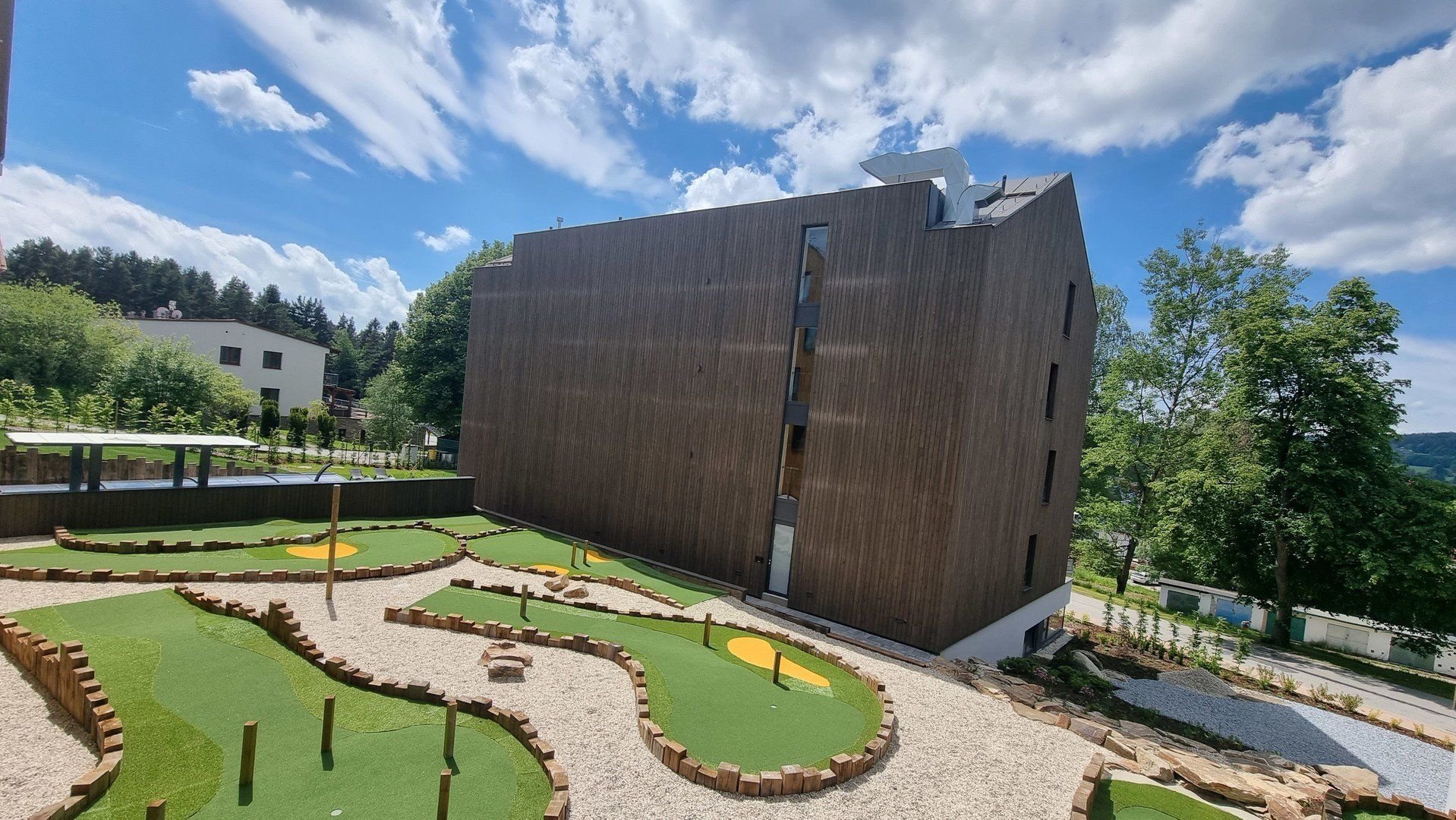 Resort obklopuje zahrada a sportoviště mezi jednotlivými budovami resortu a do saunového světa pod budovami. Vstup je povolen pouze ubytovaným hostům resortu. Saunový svět - 2x saunová kabinka, 1x infrasauna, odpočinková místnost se solnou stěnou a infralehátky. Relax zóna, venkovní vířivka s protiproudem a bazén se slanou vodou umístěné v zahradě resortu, dětské prolézačky, ohniště s posezením.,Minigolfové hřiště 6 jamek - v provozu od jara do podzimu denně a v zimě, pokud na hřišti neleží sníh, lední metaná - 2 dráhy. Masáže - klasické, sportovní, záda a šíje - zajišťuje externí masérka - nutné rezervovat předem.