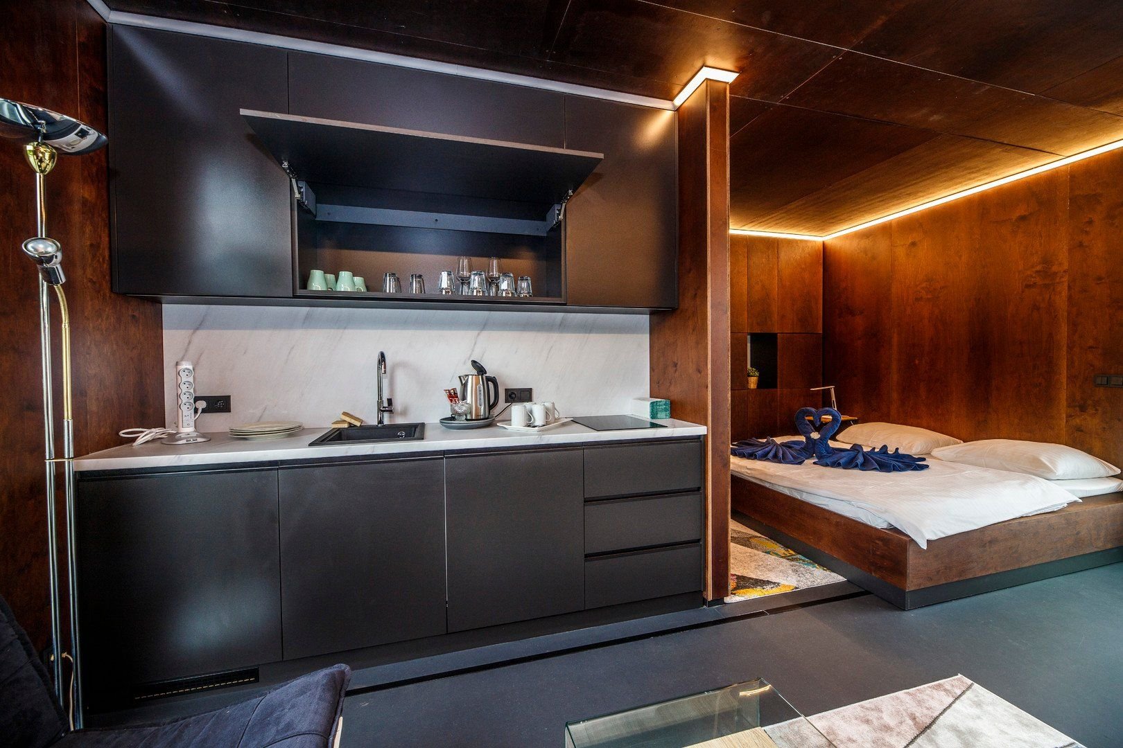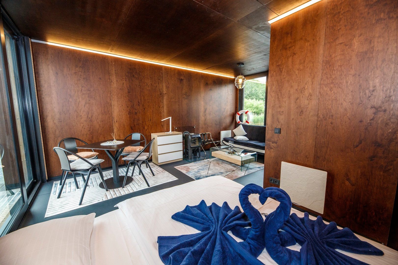 Plně vybavený kuchyňský kout - varná deska, lednice, myčkaKoueplna s WC a sprchovým koutemKrbová kamnaJídelní set, pohovkaVenkovní terasa se zahrdním nábytkemKlimatizace, TV