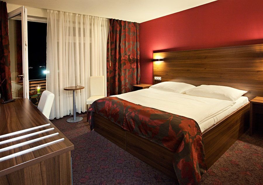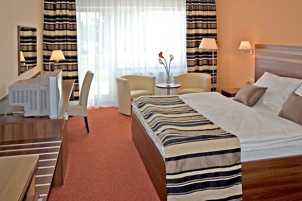 Dvoulůžkové pokoje Komfort (v hlavní budově nebo v dependanci cca 30-50 m od hotelu) na všech pokojích je sprcha a WC, TV, telefon, lednička, trezor, terasa nebo balkon, ADSL a WiFi zdarma, možnost přistýlky