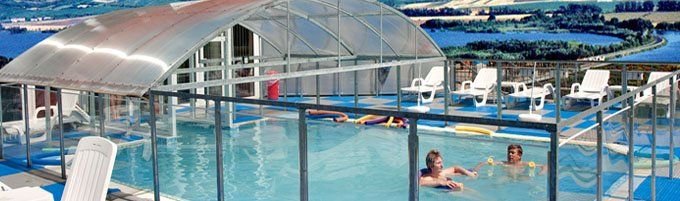 Koupání - hotelový venkovní termální bazén (34 - 37°C) s celoročním provozem, přírodní koupaliště v kempu, Aqualand Moravia Pasohlávky