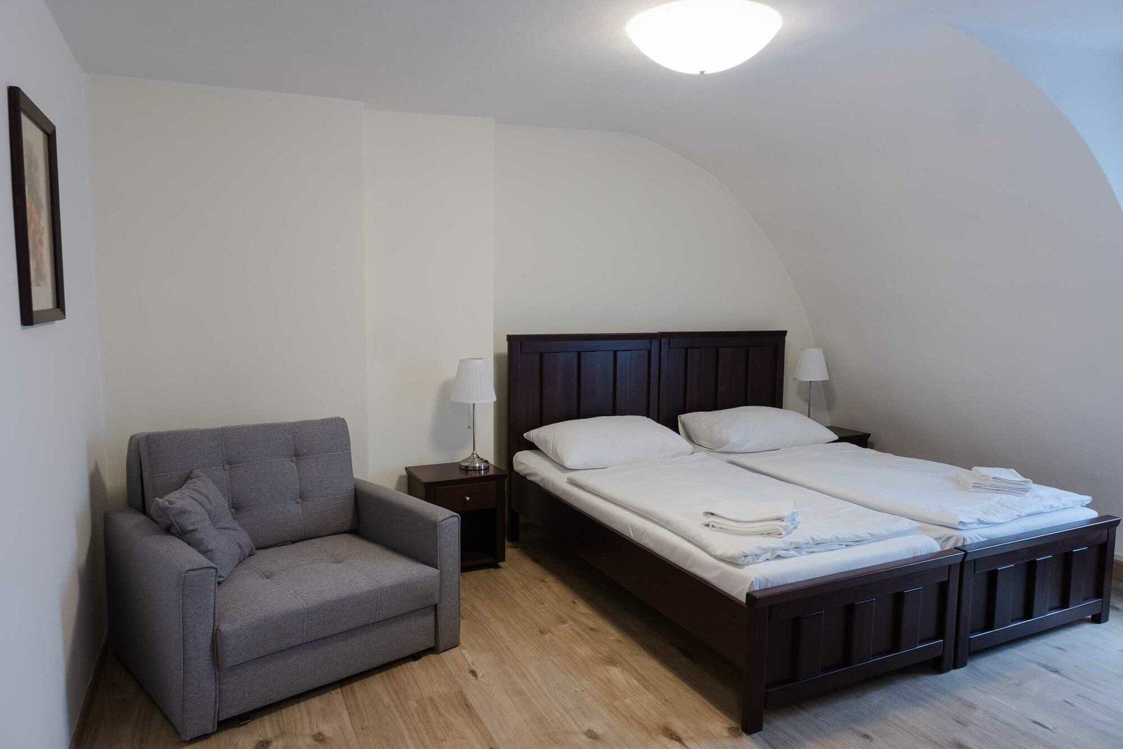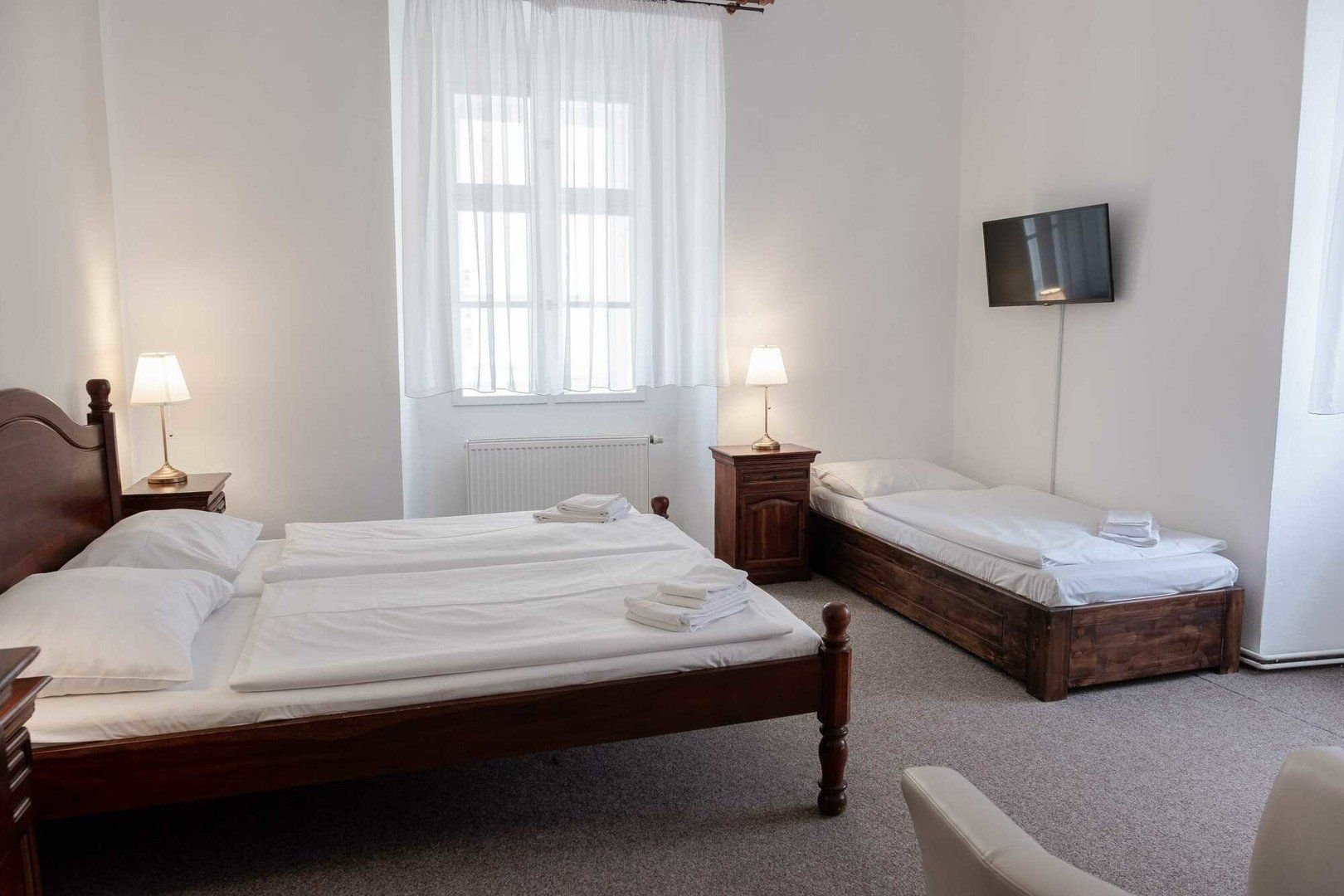 Pokoje jsou pohodlně zařízené televizí, vlastní koupelnou se sprchovým koutem nebo vanou a toaletou. Wi-Fi zdarma. Výhled z pokojů je na zámecké nádvoří nebo přes hotelovou terasu do zámeckého parku a bylinkové zahrady.