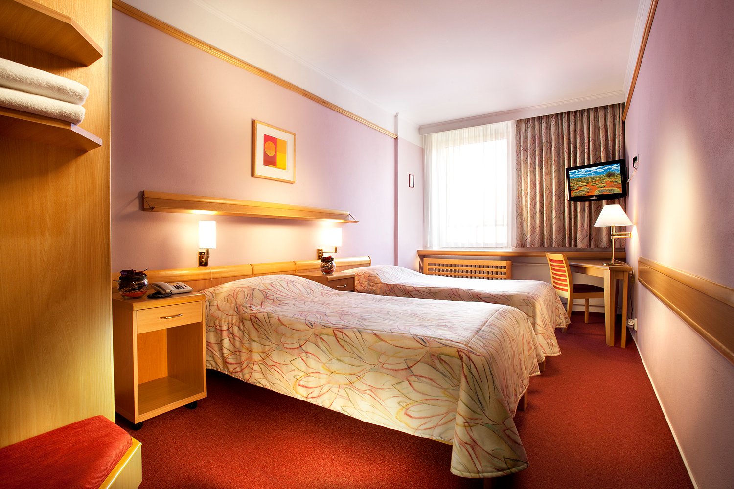 Dvoulůžkové pokoje s možností až 1 přistýlky pro dítě mají vlastní příslušenství (koupelna se sprchou, vysoušeč vlasů, WC), LCD TV, telefon, klimatizace. Apartmá s možností až 2 přistýlek pro děti se skládají z ložnice, obývacího pokoje a mají vlastní příslušenství (koupelna s vanou, vysoušeč vlasů, WC), LCD TV, telefon, klimatizace, minibar, dětská postýlka.