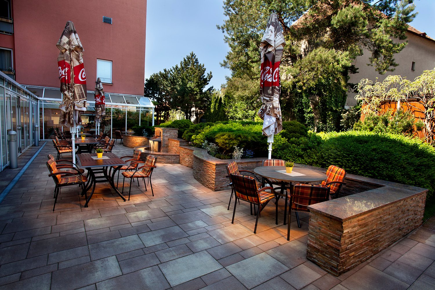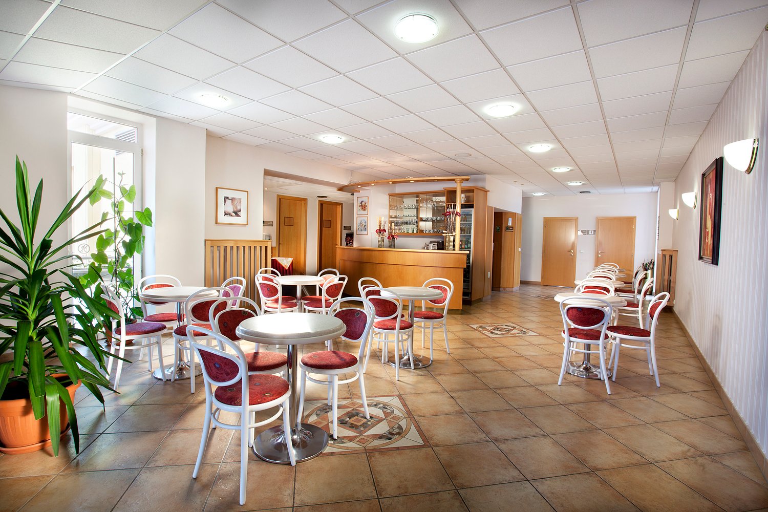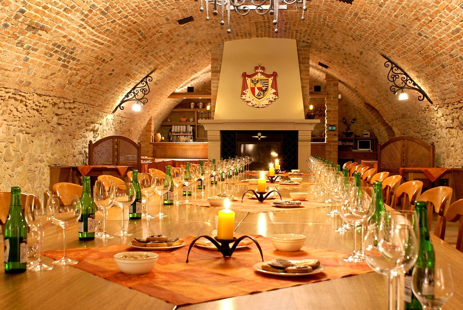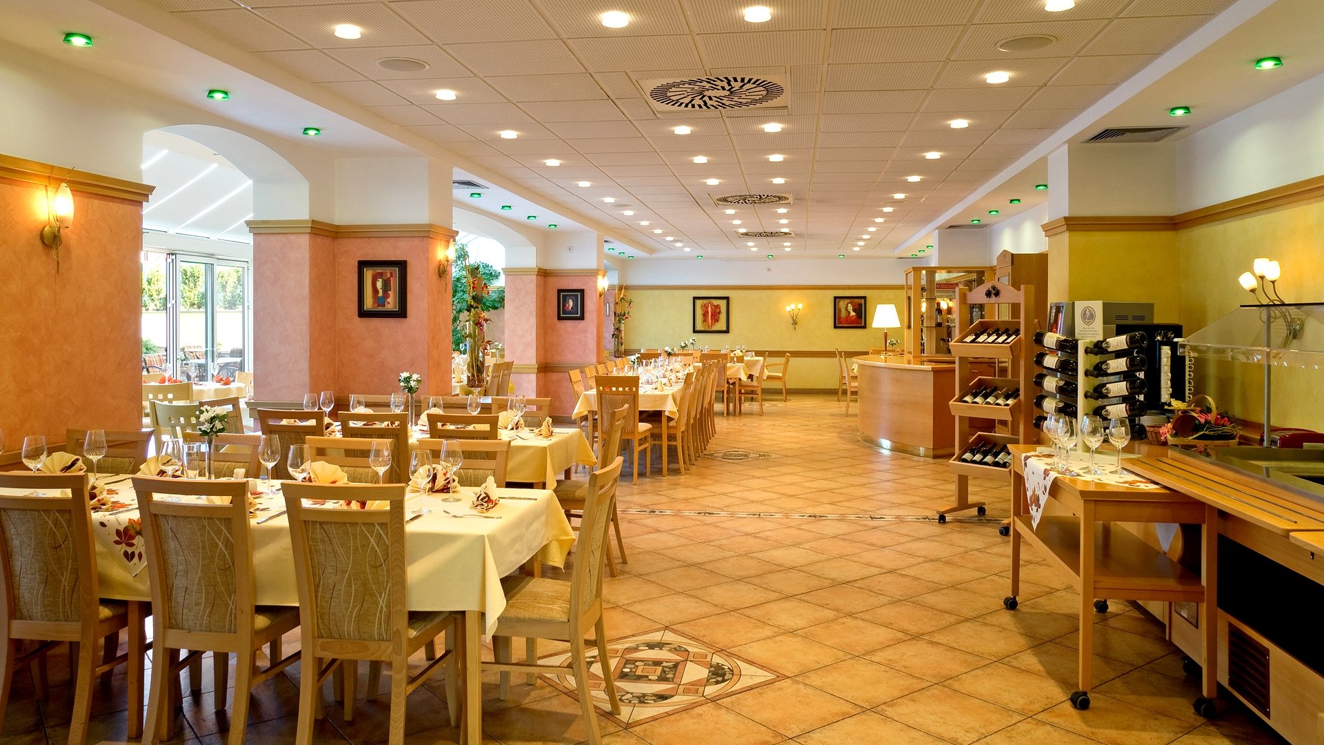 Recepce, výtah, restaurace s venkovní terasou, venkovní bazén 12x4m (červen-září), sklepní vinárna, WiFi v celém hotelu, 6 konferenčních sálů, úschovna zavazadel.