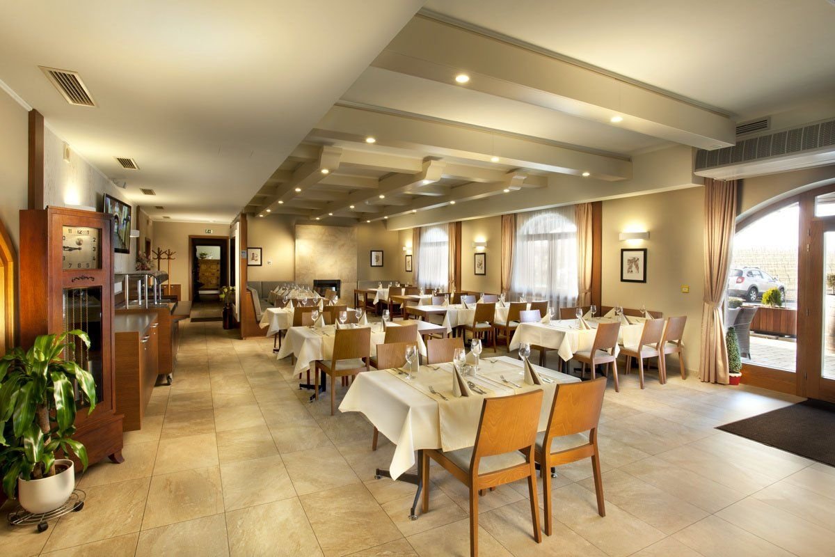 Celý penzion je nekuřácký. V přízemí je situovaná stylová restaurace s prosklenou částí a unikátním výhledem do sklepa se sudy. Dalším lákadlem penzionu je letní terasa a udírna s grilem, která je umístěna v zadní části penzionu.Vinotéka nabízí bohatý výběr výborných vín, ale také vlastní nealko nápoje, vinařské limonády, meruňkový džem a vlastní med. Hosté mohou využít dále wellness centrum, které je vybaveno moderní kombinovanou saunou doplněnou solným panelem, vířivkou pro čtyři osoby a luxusní balneovanou.
