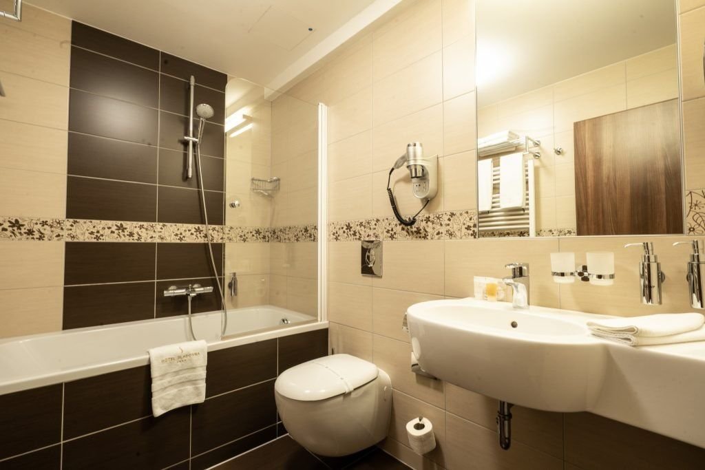 Dvoulůžkové pokoje Komfort mají vlastní příslušenství (koupelna se sprchou/vanou, vysoušeč vlasů, WC), LCD TV, telefon, trezor, minibar.K dipozici župan a přezůvky