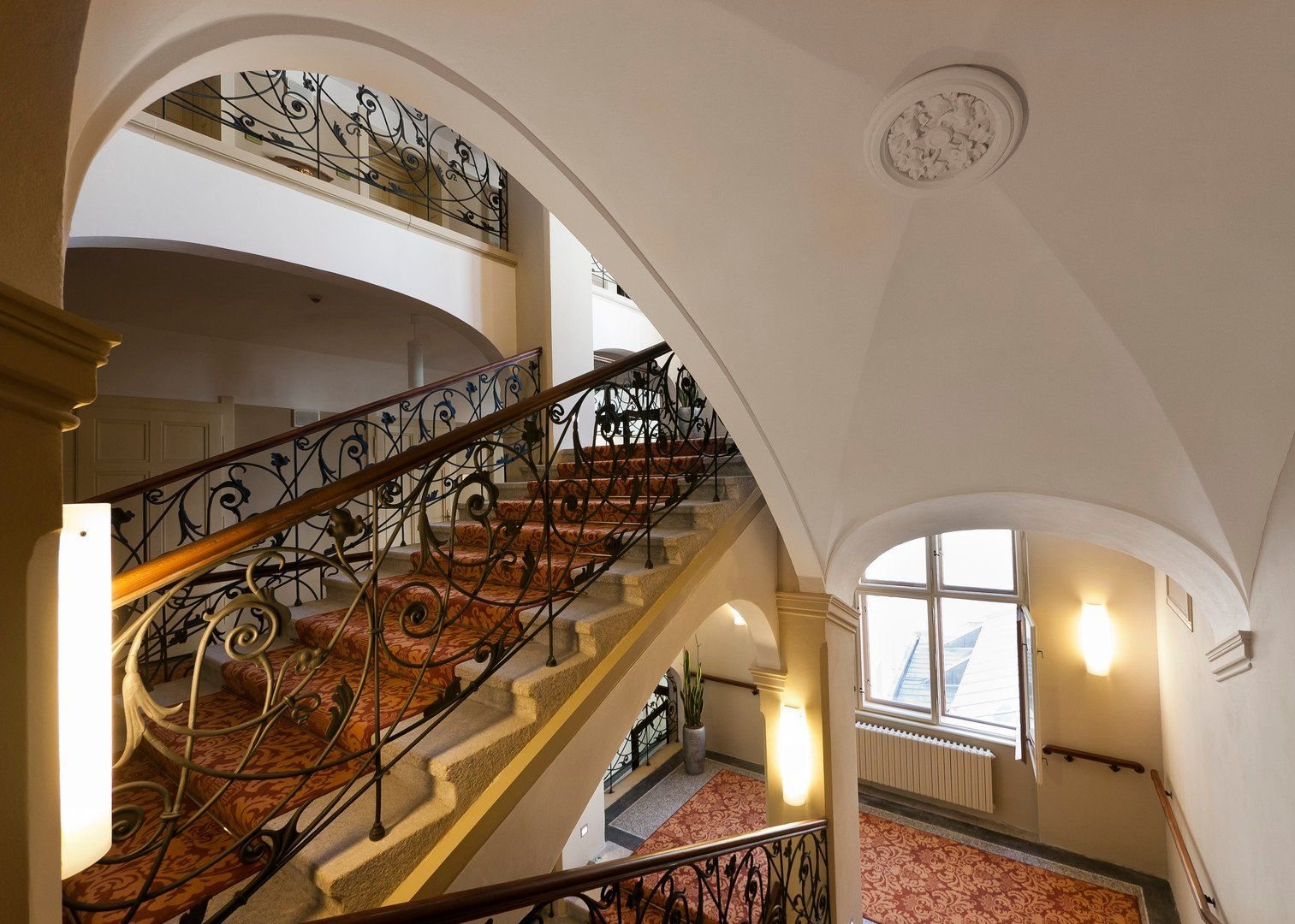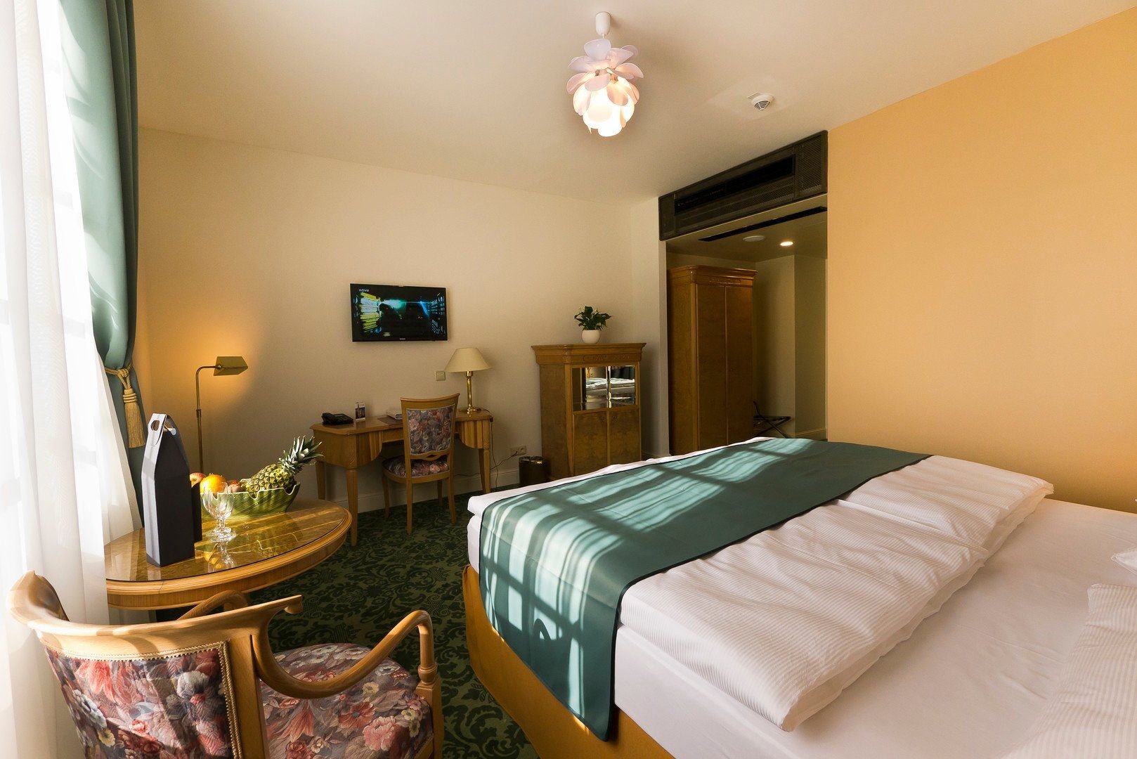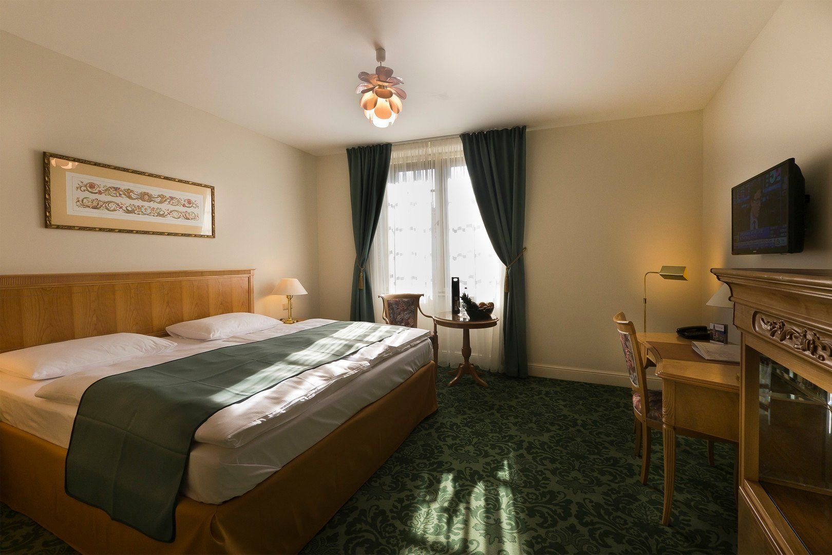 Hotel s bohatou historií, zdobenými prostorami, veselými venkovními freskami.Nonstop recepce, vysoký standard služeb, stravování a léčebných služeb, restaurace s venkovní zahrádkou, music bar, wellness centrum, balneoprovoz, kosmetické a beauty studio, hlídané parkoviště, multifunkční salonky.
