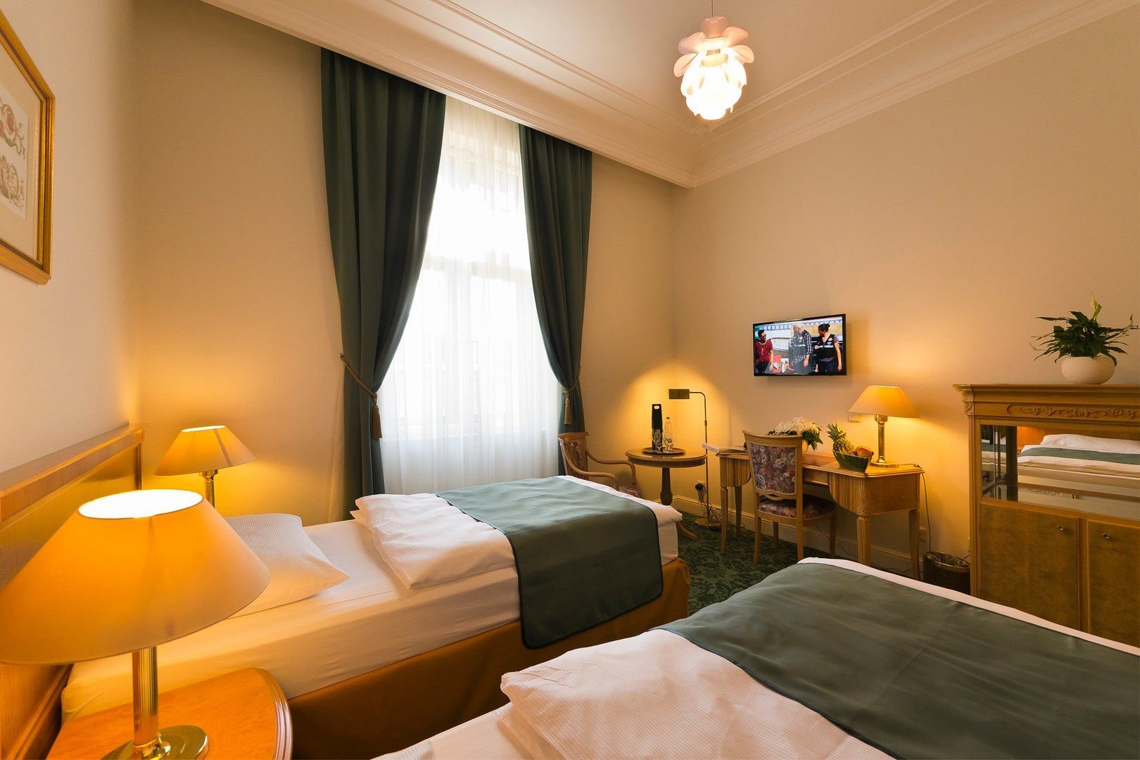 Jednolůžkové a dvoulůžkové pokoje classic, WC, sprcha, fén, telefon, TV/SAT, WiFi, trezor, minibar, klimatizace, župan a pantofle. Dvoulůžkové pokoje Superior (možnost přistýlky) mají navíc vanu a bidet, Pokoje Junior Suite vybavené luxusní koupelna je vybavena jak sprchovým koutem, tak vanou, umyvadlem, toaletou i bidetem (možnost jedné velké koupelny, anebo si můžete zvolit koupelnu oddělenou od toalety).Další typy pokojů Junior suites, Suit a Tower suite na vyžádání.