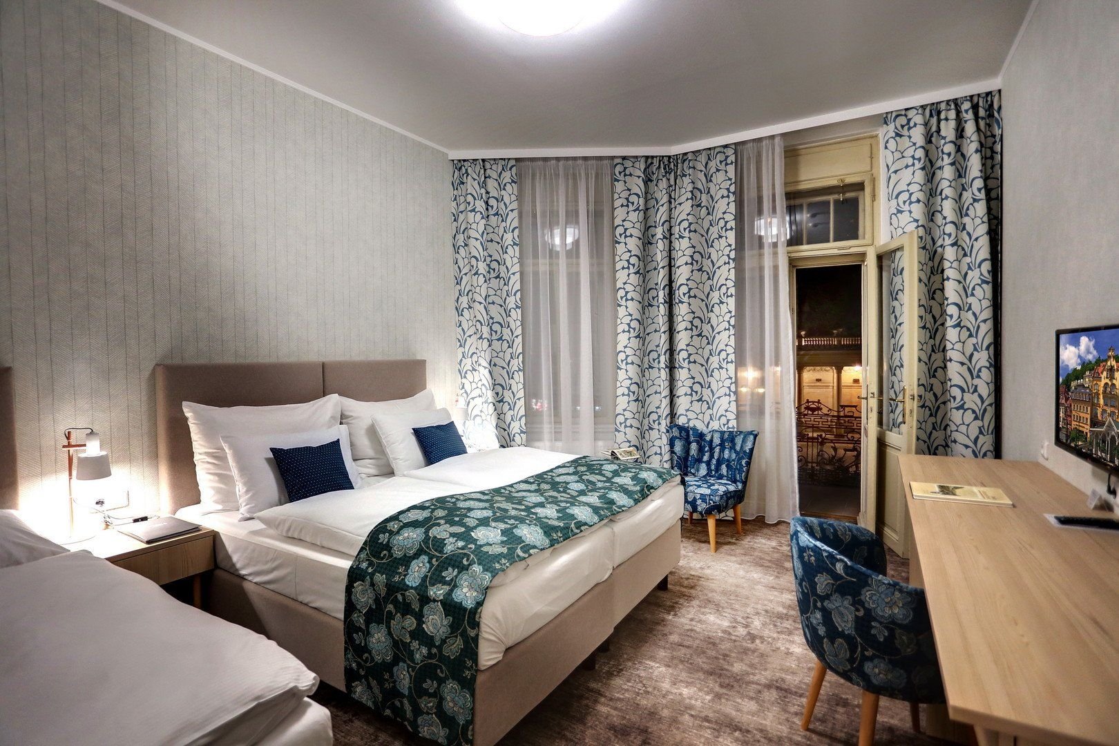 Hotel Astoria nebo 300 m vzdálená dependance Art Deco Wolker: jedno a dvoulůžkové nekuřácké pokoje s příslušenstvím, TV/SAT, chladnička, telefon, rádio, trezor, WiFi zdarma, některé pokoje mají výhled na Mlýnskou kolonádu (Comfort Plus).Pokoje v Art Deco Wolker jsou všechny po nedávné rekostrukci.