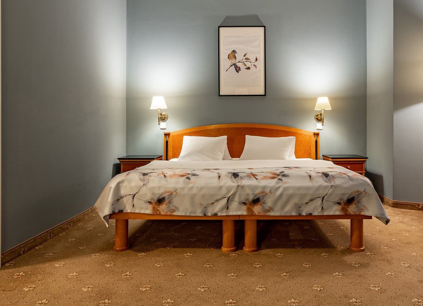 Dvoulůžkové pokoje o velikosti od 23 do 25 metrů čtverečních. Skládá se z ložnice, koupelny se sprchovým koutem a fénem, předsíně s velkou šatní skříní. froté ručníky, župan a přezůvky, trezor, minibar, TV, WiFi připojení Pokoj Junior Suite - o velikosti od 26 do 31 metrů čtverečních jsou na vyžádání. Skládá se z ložnice, koupelny a předsíně s velkou šatní skříní, vana nebo sprchový kout fén froté ručníky, župan a přezůvky trezor minibar TV WiFi připojeníJednolůžkové pokoje a pokoje Junior Suite s balkonem na vyžádání