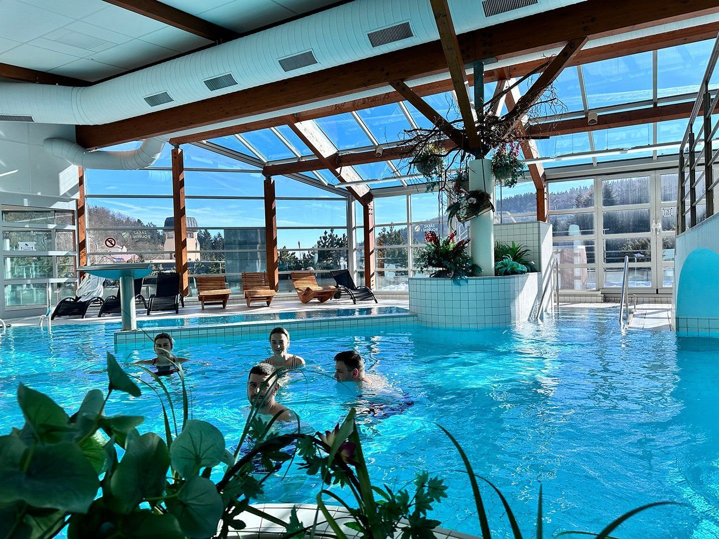 V hotelu se nacháhí restaurace, výtah - propojeno s Aquacentrem a lázeňským domem, kde se provádějí procedury.K dispozici úschovna lyží a kol.Aquacentrum - termální bazén s protiproudem, masážními a perličkovými lůžky, vnitřní a venkovní vířivkou, saunami, parním boxem, bufetem.