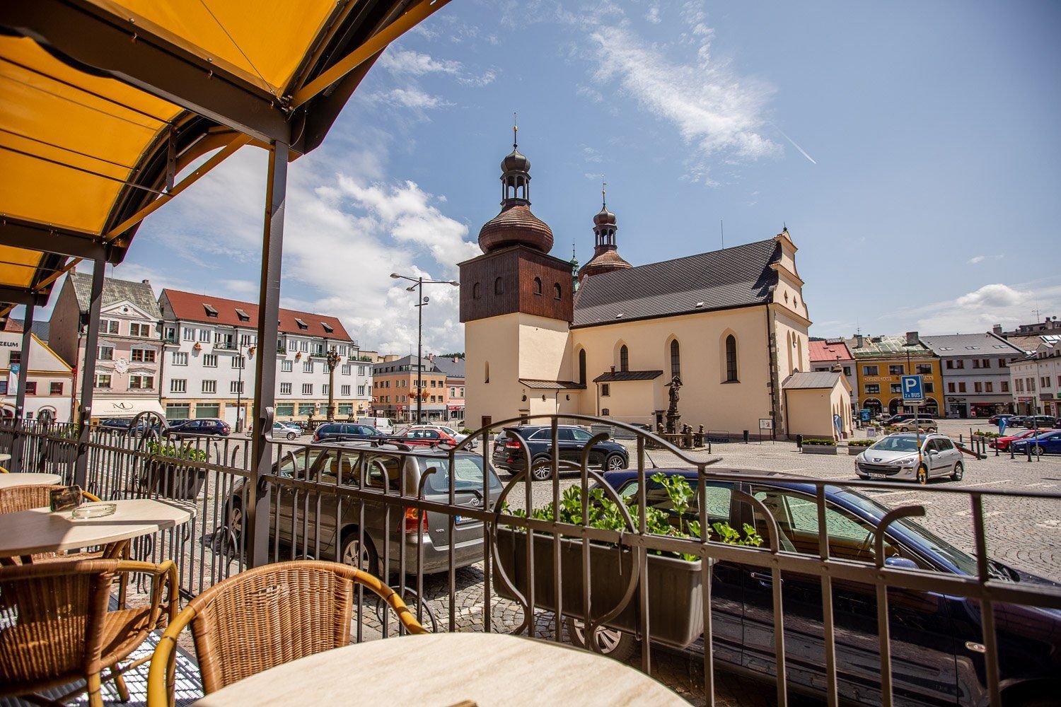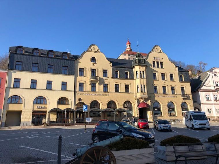 Na Masarykově náměstí v historickém centru města, nedaleko zámku Náchod.