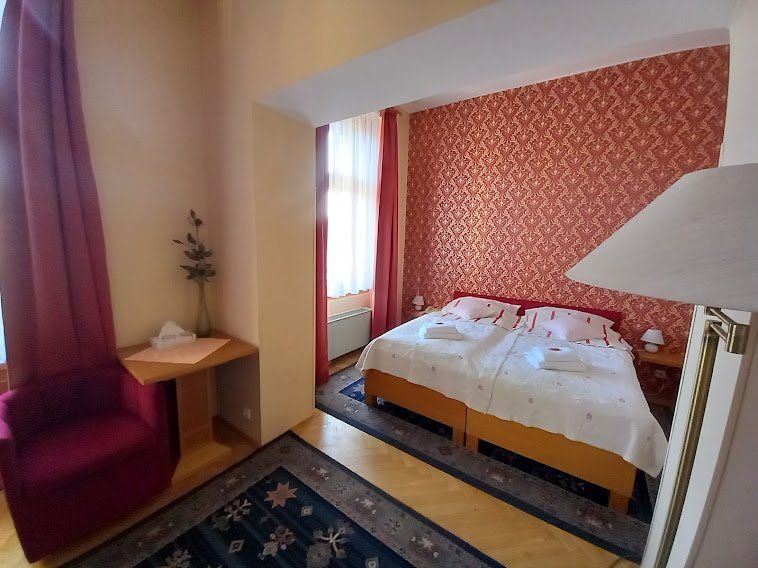 Standardní pokoje jsou vybaveny vlastním sociálním zařízením, vysoušečem vlasů a Wi-Fi připojením. Tyto pokoje jsou v nové části budovy, ale znevýhodněné výhledem do vnitrobloku. Superior pokoje jsou navíc oproti Standardům vybaveny klimatizací, mají možnost přistýlky a výhled na náměstí.