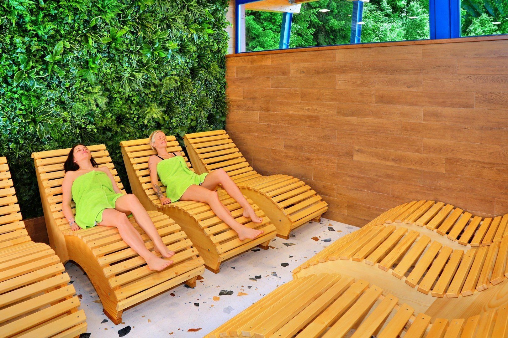 Restaurace s výhledem na sjezdovku Medvědín, bazénové bistro. Aquapark - bazén, dětský bazén, tobogán, vířivky, sauny, solná jeskyně, masáže. Masáže a vstup do saunové zóny (suchá sauna, parní sauna a solná jeskyně) za poplatek. Od dubna do konce listopadu 2025 bude uzavřen z důvodu rekonstrukce aquapark, wellness, solné jeskyně. V létě: minigolf, stolní tenis, dětské hřiště, trampolína, relax zóna u jezírka s lehátky, badminton, pétanque, půjčovna kol, koloběžek, elektrokol.