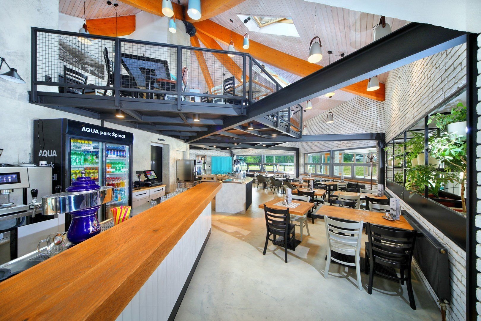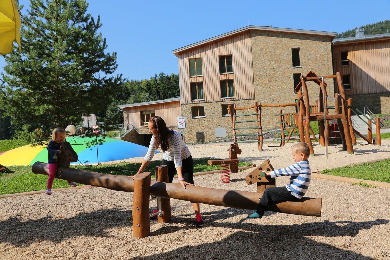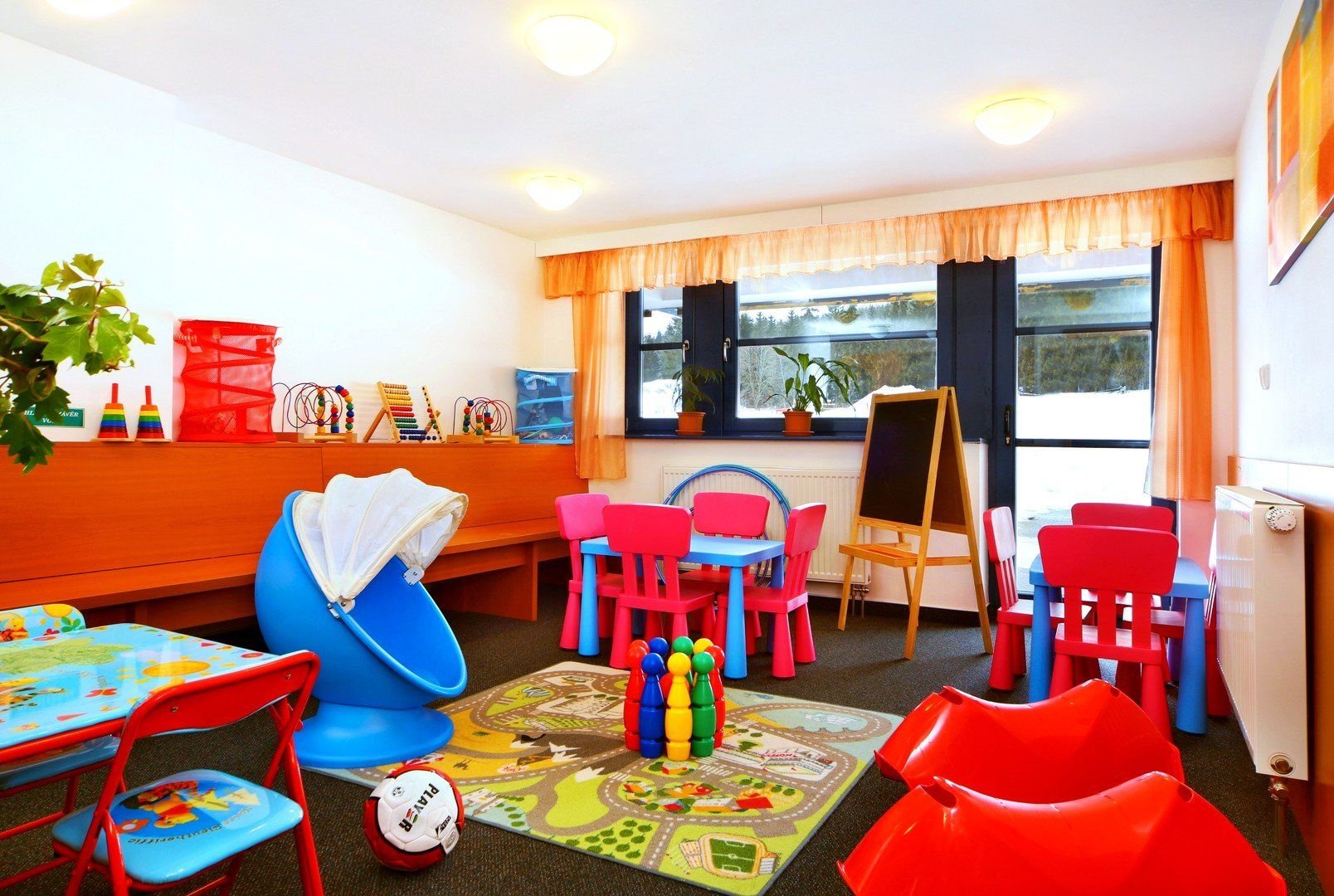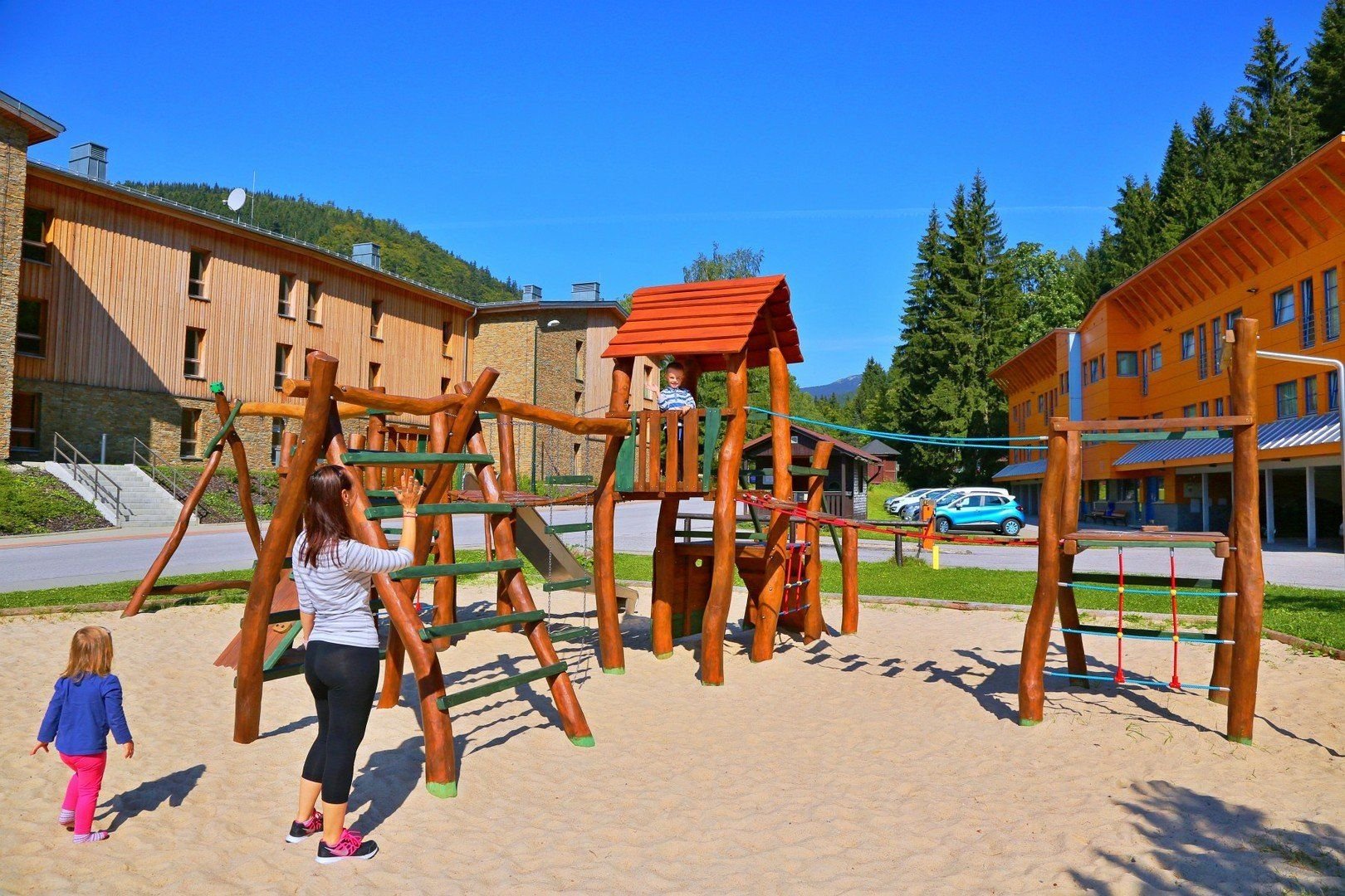 Restaurace s výhledem na sjezdovku Medvědín, bazénové bistro. Aquapark - bazén, dětský bazén, tobogán, vířivky, sauny, solná jeskyně, masáže. Masáže a vstup do saunové zóny (suchá sauna, parní sauna a solná jeskyně) za poplatek. Od dubna do konce listopadu 2025 bude uzavřen z důvodu rekonstrukce aquapark, wellness, solné jeskyně. V létě: minigolf, stolní tenis, dětské hřiště, trampolína, relax zóna u jezírka s lehátky, badminton, pétanque, půjčovna kol, koloběžek, elektrokol.