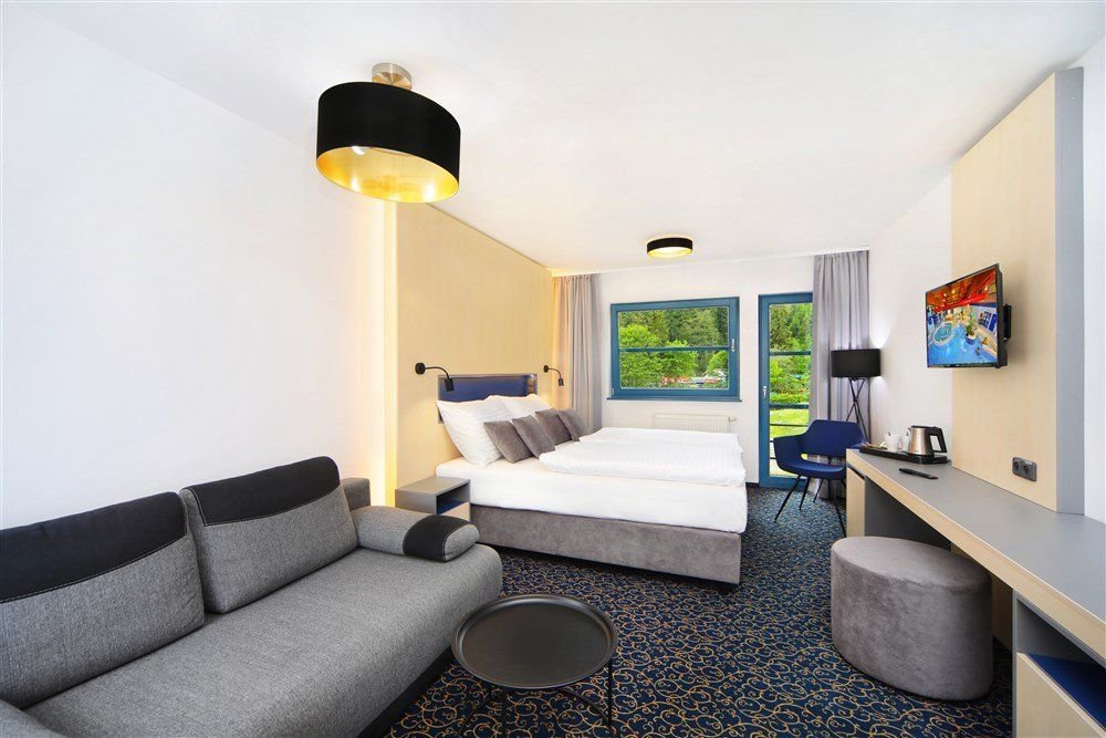 Check-in: od 14:00Check-out: do 10:00Parkování - přímo u hotelu - pro hosty zdarmaMístní poplatek - není zahrnut v ceně pobytu - úhrada na místěDomácí mazlíček - za poplatek - úhrada na místě - po předchozí dohoděDětská postýka - zdarma - po předchozí dohoděVstup do aquaparku zahrnuje všechny vodní atrakce s tobogány, divokou řekou a whirlpooly.Duben - konec listopadu 2025 bez možnosti využití aquaparku, wellness a solné jeskyně.