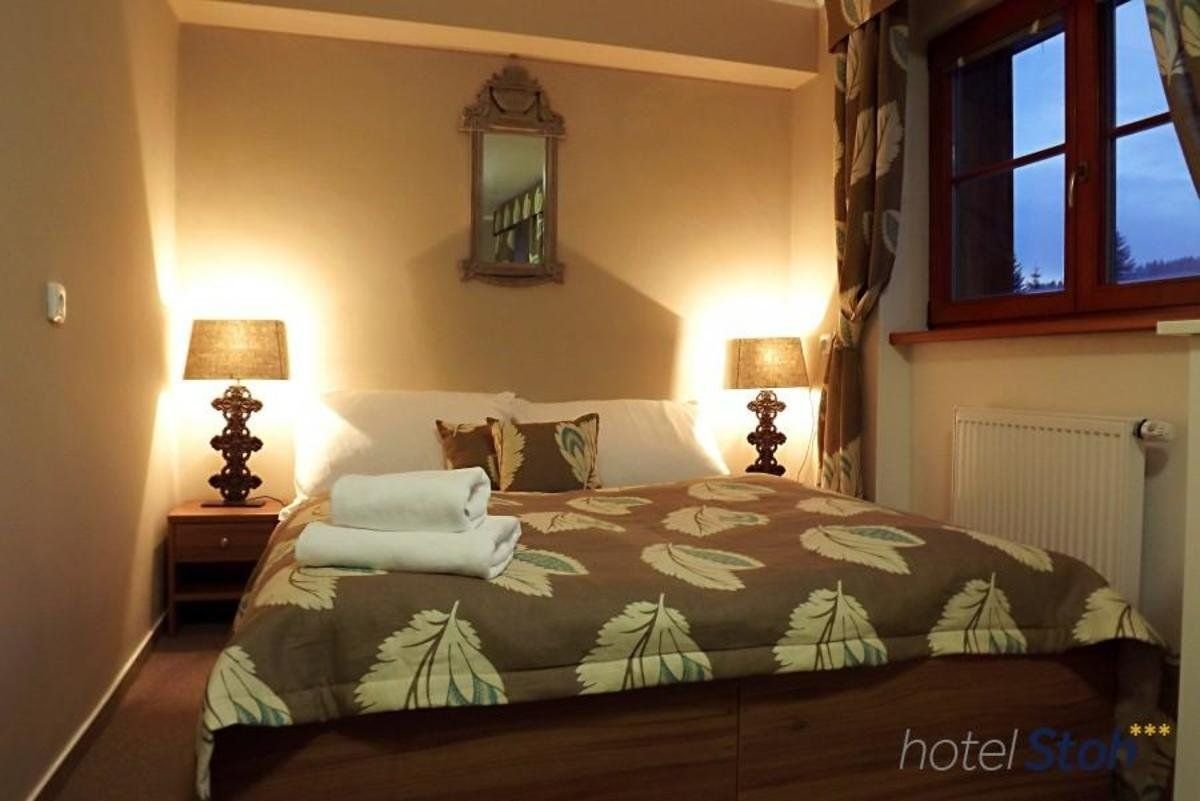Hotel se nachází v údolí Svatého Petra, přímo u sjezdovky zvané Stoh s výhledem na Kozí Hřbety.