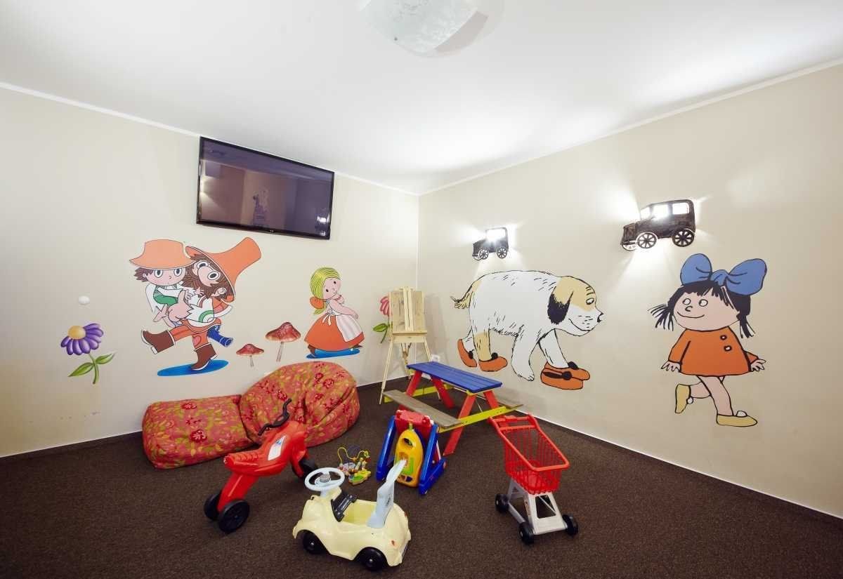 Restaurace, lobby bar, fitness, dětský koutek, biliard, lyžárna, venkovní hřiště s trampolínou. Hotel nemá výtah.
