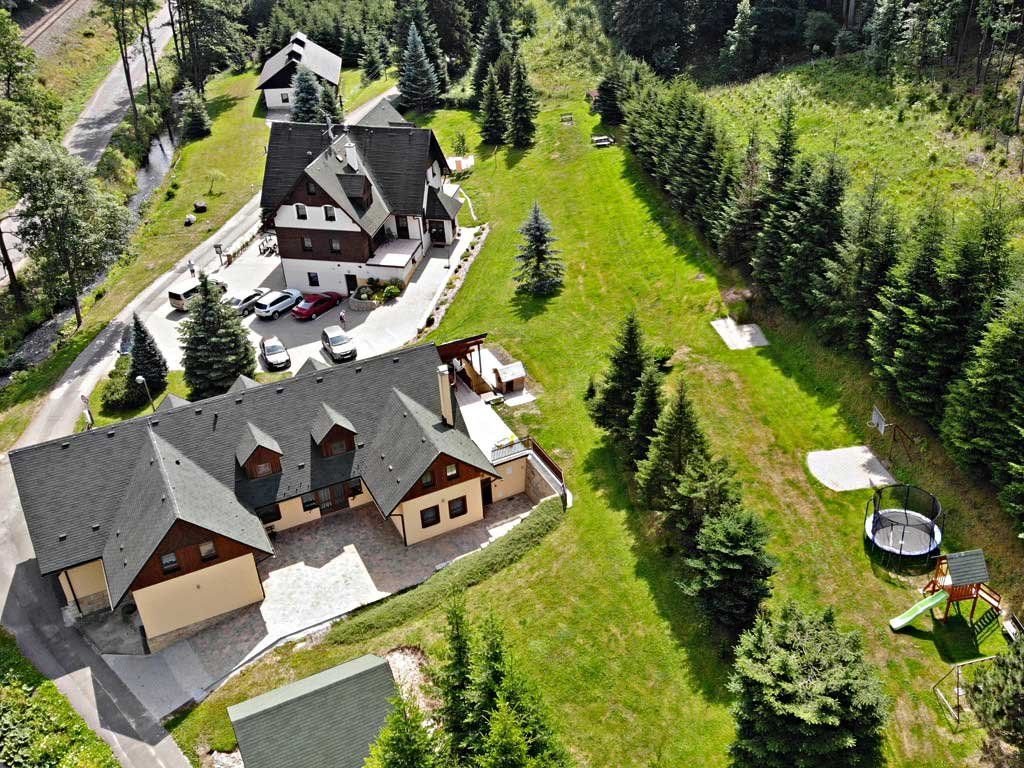 Venkovní letní terasa, jídelna, ve stráni nad pensionem je dětské hřiště (pískoviště, skluzavka, houpačky), basketbalový koš, ruské kuželky, úschovna kol, možnost opékání na ohništi, parkování u pensionu zdarma.