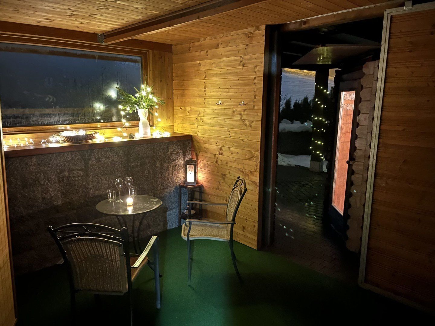 6 apartmánů ve 4 samostatných domech, parkoviště, uzamykatelná vyhřívaná lyžárna/kolárna, WiFi, venkovní finská sauna s odpočívárnou, venkovní dětský koutek s pískovištěm, skluzavkou a houpačkami, trampolína, stolní tenis, otevřené ohniště, gril, několik různých venkovních posezení a lahétek v odpočinkové zóně zahrady.