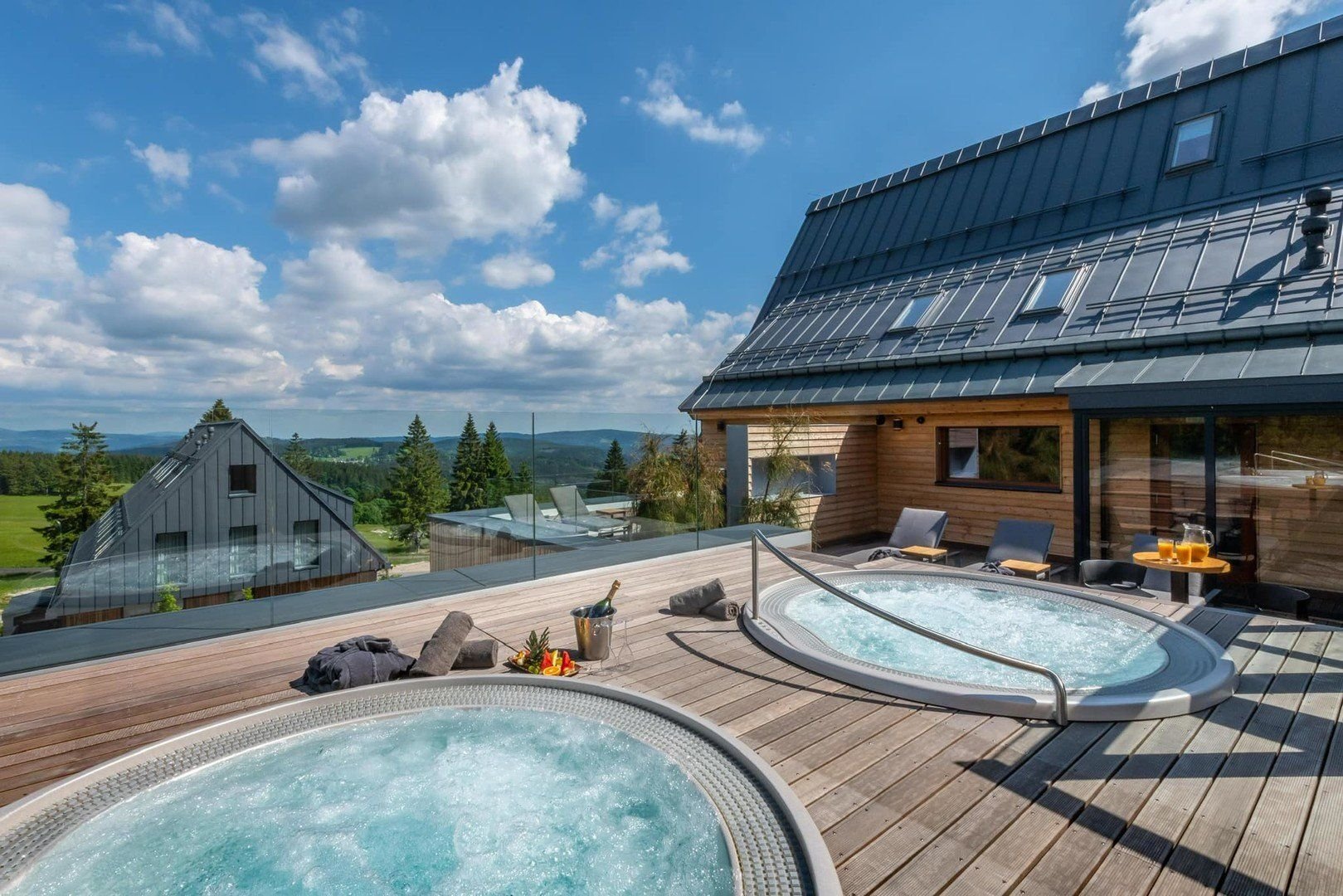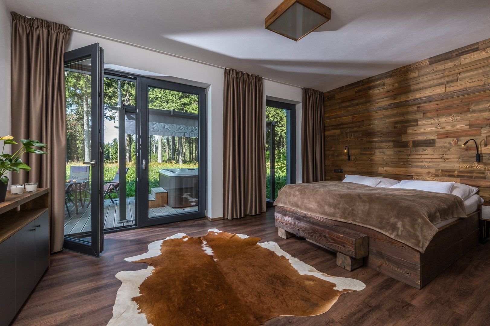 Královský suite s venkovní vířivkou - max. obsazenost 2 osoby, terasa se soukromou vířivkou, kávovar, čajový set, safe, TV/sat, pací stůl, židle, župany, flip-flops, koupelna se sprchovým koutem, WC, fén, hotelová kosmetikaJunior suite - s manželskou postelí a možností dvou přistýlek, max. obsazenost 4 osoby, kávovar, čajový set, safe, TV/sat, pací stůl, židle, koupelna se sprchovým koutem, WC, fén, hotelová kosmetikaApartmán s ložnicí a terasou - bezbariérový přístup, vlastní předzahrádka s terasou, jedna oddělená ložnice, možnost dvou přistýlek, koupelna se sprchovým koutem, WC, fén, hotelová kosmetika, TV/sat, plně vybavený kuchyňský kout - lednice, mikrovlná trouba, myčka, indukční deska, rychlovarná konvice, nádobí, příbory, podlahové vytápěníApartmán s ložnicí - jedna oddělená ložnice, možnost dvou přistýlek, koupelna se sprchovým koutem, WC, fén, hotelová kosmetika, TV/sat, plně vybavený kuchyňský kout - lednice, mikrovlná trouba, myčka, indukční deska, rychlovarná konvice, nádobí, příbory, podlahové vytápěníApartmán s venkovní vířivkou - bezbariérový přístup, vlastní předzahrádka s terasou a soukromou vířivkou, jedna oddělená ložnice, možnost dvou přistýlek, koupelna se sprchovým koutem, WC, fén, hotelová kosmetika, župany, flip-flops, TV/sat, plně vybavený kuchyňský kout - lednice, mikrovlná trouba, myčka, indukční deska, rychlovarná konvice, nádobí, příbory, podlahové vytápěníApartmán se 2 ložnicemi - dvě oddělené ložnice, možnost dvou přistýlek na rozkládacím gauči v obývacím pokoji, koupelna se sprchovým koutem, WC, fén, hotelová kosmetika, TV/sat, plně vybavený kuchyňský kout - lednice, mikrovlná trouba, myčka, indukční deska, rychlovarná konvice, nádobí, příbory, podlahové vytápěníMezonetový apartmán se 2 ložnicemi - dvě oddělené ložnice, možnost dvou přistýlek na rozkládacím gauči v obývacím pokoji, koupelna se sprchovým koutem, 2 x WC, fén, hotelová kosmetika, TV/sat, plně vybavený kuchyňský kout - lednice, mikrovlná trouba, myčka, indukční deska, rychlovarná konvice, nádobí, příbory, podlahové vytápění Mezonetový apartmán se 3 ložnicemi - tři oddělené ložnice, možnost dvou přistýlek na rozkládacím gauči v obývacím pokoji, koupelna se sprchovým koutem, 2 x WC, fén, hotelová kosmetika, TV/sat, plně vybavený kuchyňský kout - lednice, mikrovlná trouba, myčka, indukční deska, rychlovarná konvice, nádobí, příbory, podlahové vytápění
