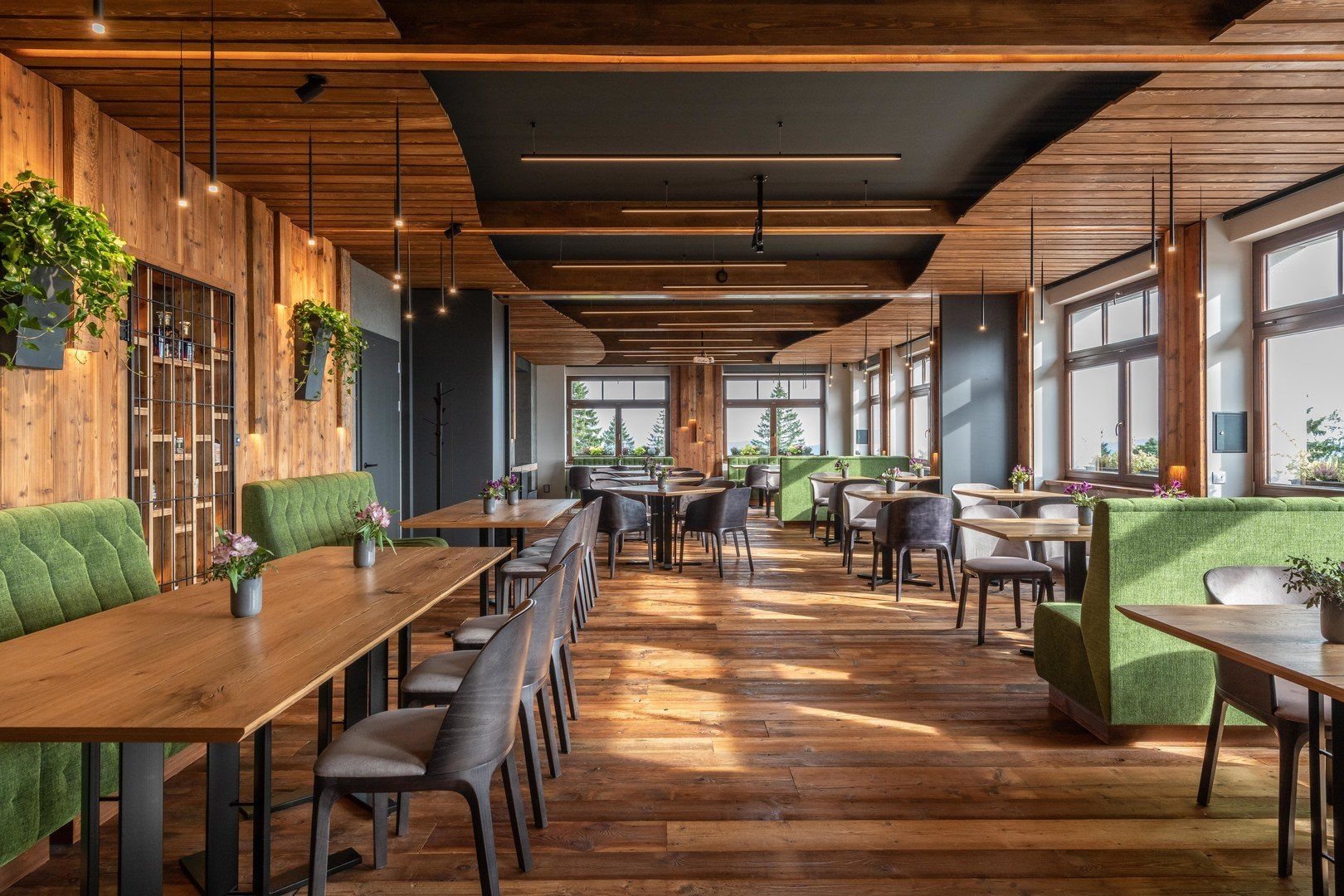 Recepce, Wi-Fi zdarma, Královská restaurace a restaurace Sluneční terasa (samoobslužná, alpského typu), venkovní bar, stánek u rozhledny, wellness, velká sluneční terasa, venkovní Aperol bar, největší dětské hřiště v Jizerských horách, SPA & WELLNESS (dvě vířivky na terase pod širým nebem, sauna, pára, ochlazovací bazének, zážitkové sprchy, odpočinková místnost s krbem) - za poplatek, certifikované dětské atrakce, unikátní rozhledna, parkoviště. V areálu hotelu půjčovna kol, elektrokol, lyží.