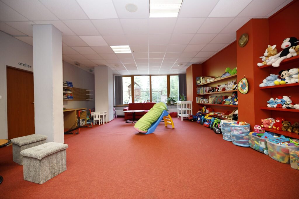 Prostorná a plně vybavená dětská herna (velké množství herních prvků) s promítáním pohádek, součástí herny je i kreslící ateliér. Venkovní hřistě se skluzavkou, houpací talíře, provazová stěna, mini horolozecká stěna, pískoviště, houpačky a trampolína. Stolní tenis, fotbálek, Air hokej, videomaty, deskové hry k zapůjčení. Možnost zapůjčení kol, koloběžek a lyží pro jakoukoliv věkovou skupinu.