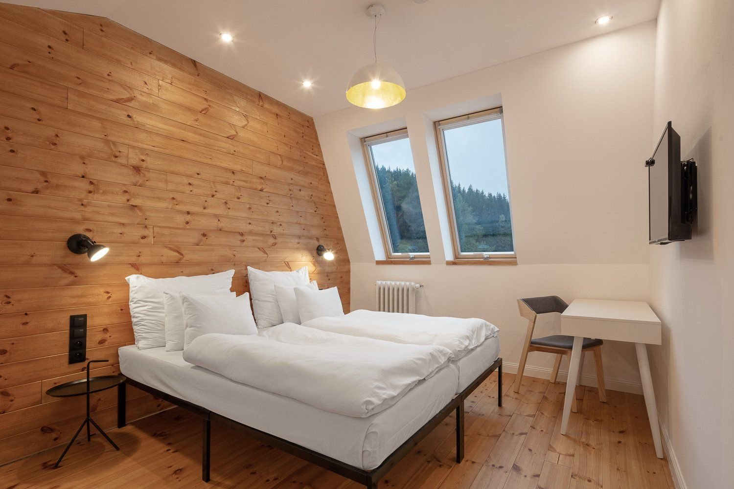 Hotel se nachází cca 20 min pěšky od centra Harrachova, v blízkém okolí naučných stezek a turistických tras. Přímo z hotelu je krásný výhled na Čertovu horu.