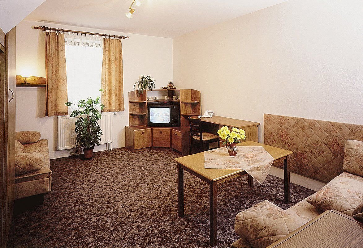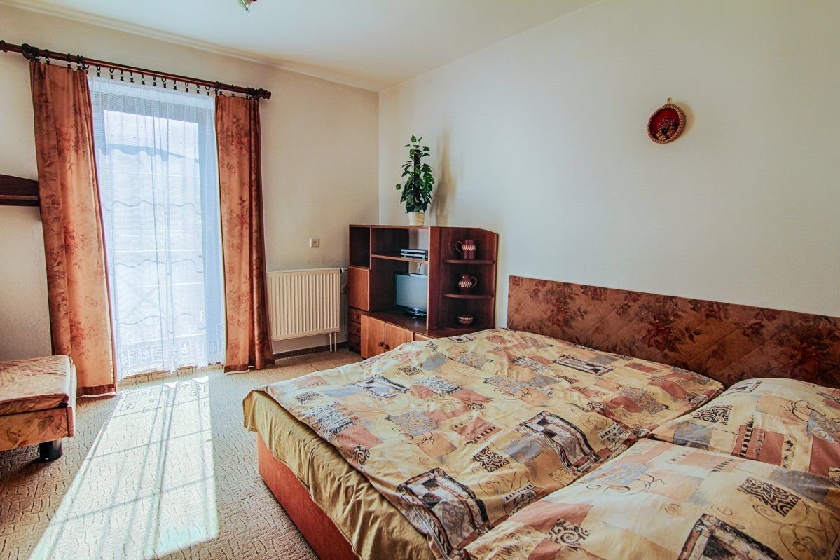 Dvoulůžkové pokoje s možností přistýlky (rozkládací gauč) s vlastním sociálním zařízením (vana, sedací vana nebo sprchový kout), TV a Wi-Fi. Mezonetový pokoj s 2 přistýlkami s mikrovolnou troubou, lednicí a rychlovarnou konvicí.