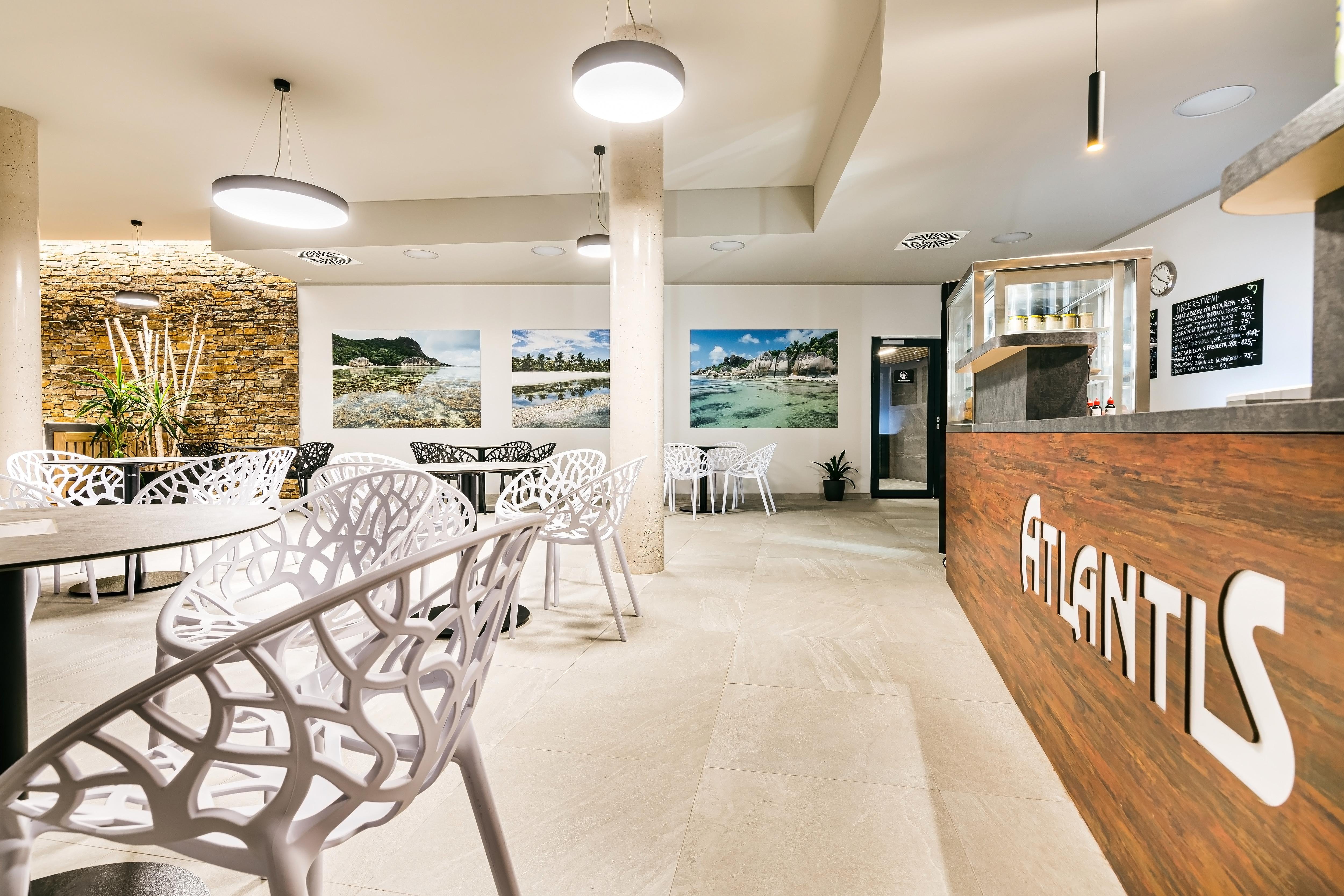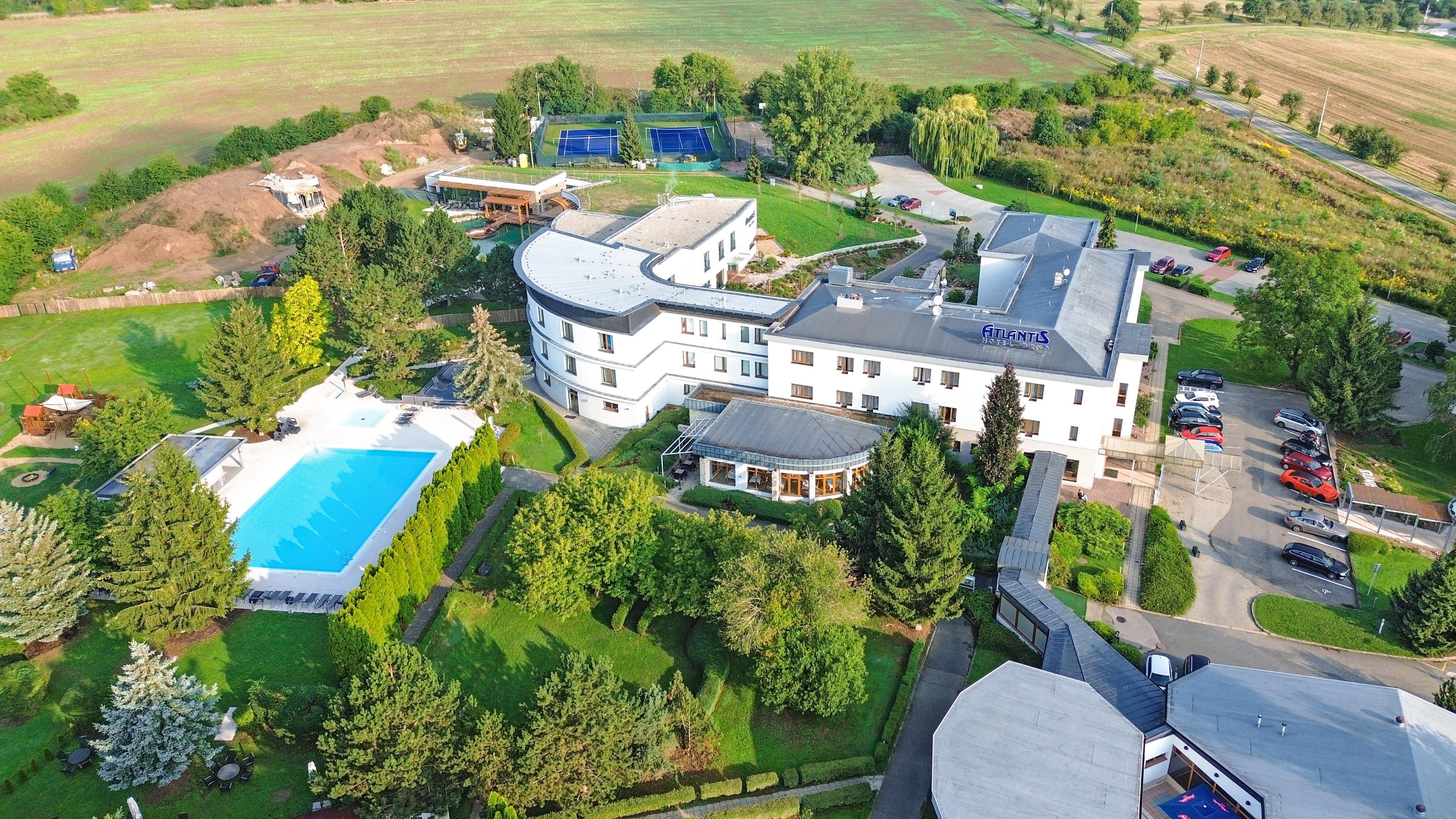 Hotel Atlantis je moderní čtyřhvězdičkový hotel, který se nachází v klidné lokalitě v blízkosti Brněnské přehrady. Samotné centrum Brna je vzdálené přibližně 15 minut jízdy autem. Hotel nabízí služby rozsáhlého wellness centra, kde se nachází saunový svět, relaxační bazén nebo také venkovní vířivka. Součástí hotelu jsou také dvě restaurace a v areálu se rovněž nachází několik sportovišť nebo venkovní bazén.