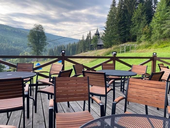 Samoobslužná restaurace, hospůdka, bar, wellness (finská, parní sauna), relaxační zóna, dětská herna, herna se stolním tenisem a venku si děti mohou hrát na trampolíně.
