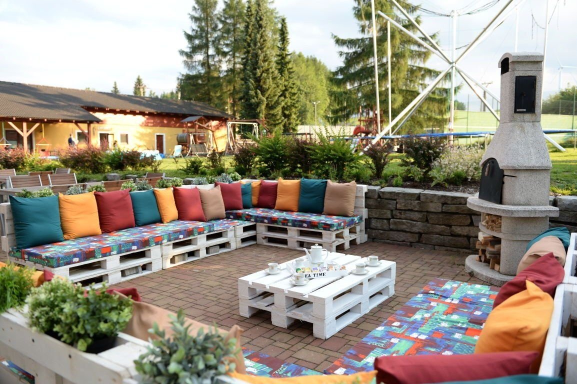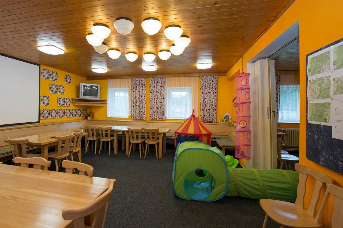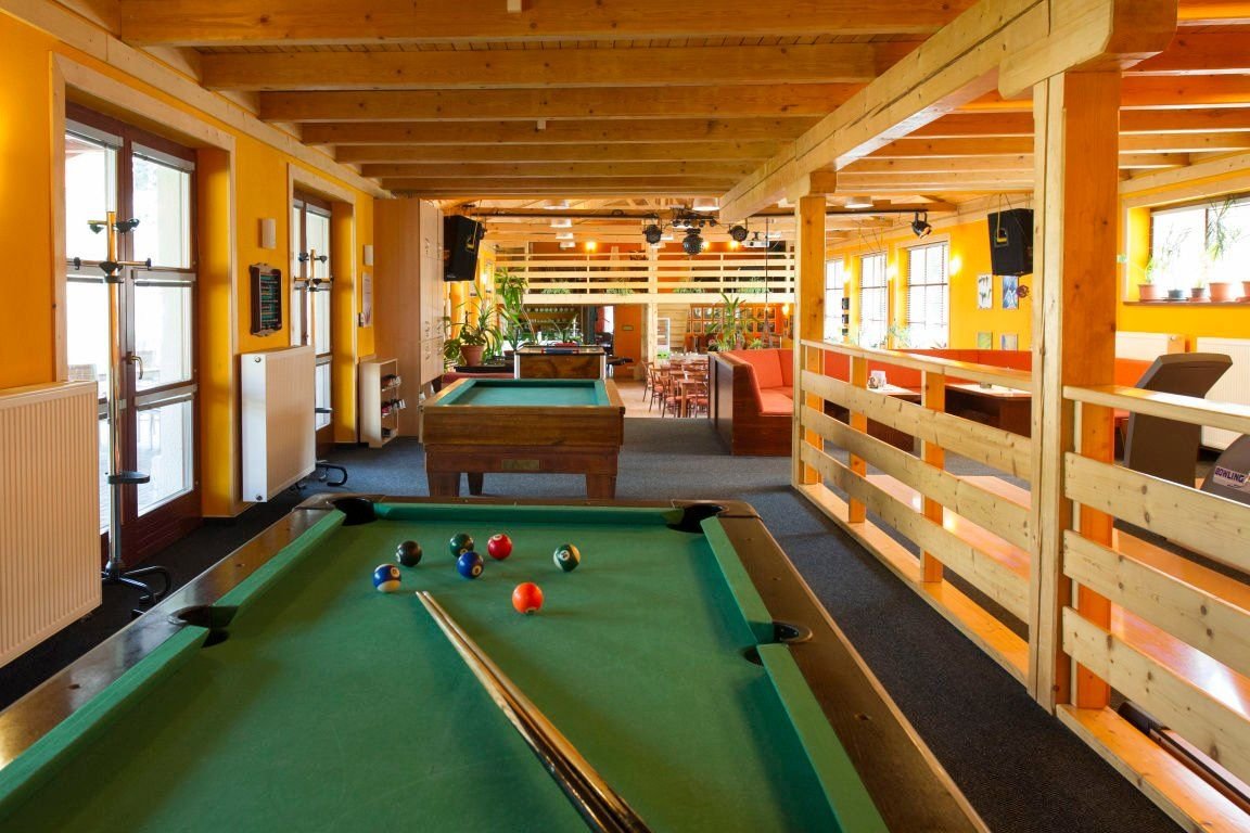 Recepce, restaurace se zmrzlinovým barem ve vedlejší budově, společenská místnost s TV, společná kuchyňka, WiFi v celém areálu, úschovna kol, infocentrum, půjčovna sportovního vybavení, suvenýry.