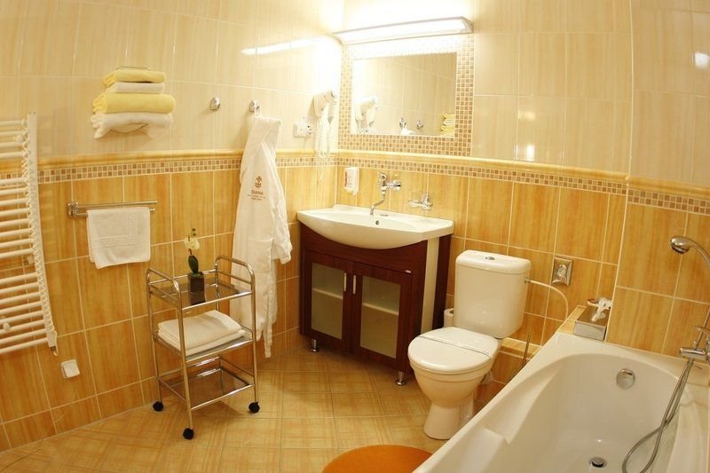 Dvoulůžkové pokoje standard - sprcha / vana + WC, fén, SAT TV, telefon, lednička (minibar na vyžádání), WiFiK dispozici jsou i rodinná apartmá