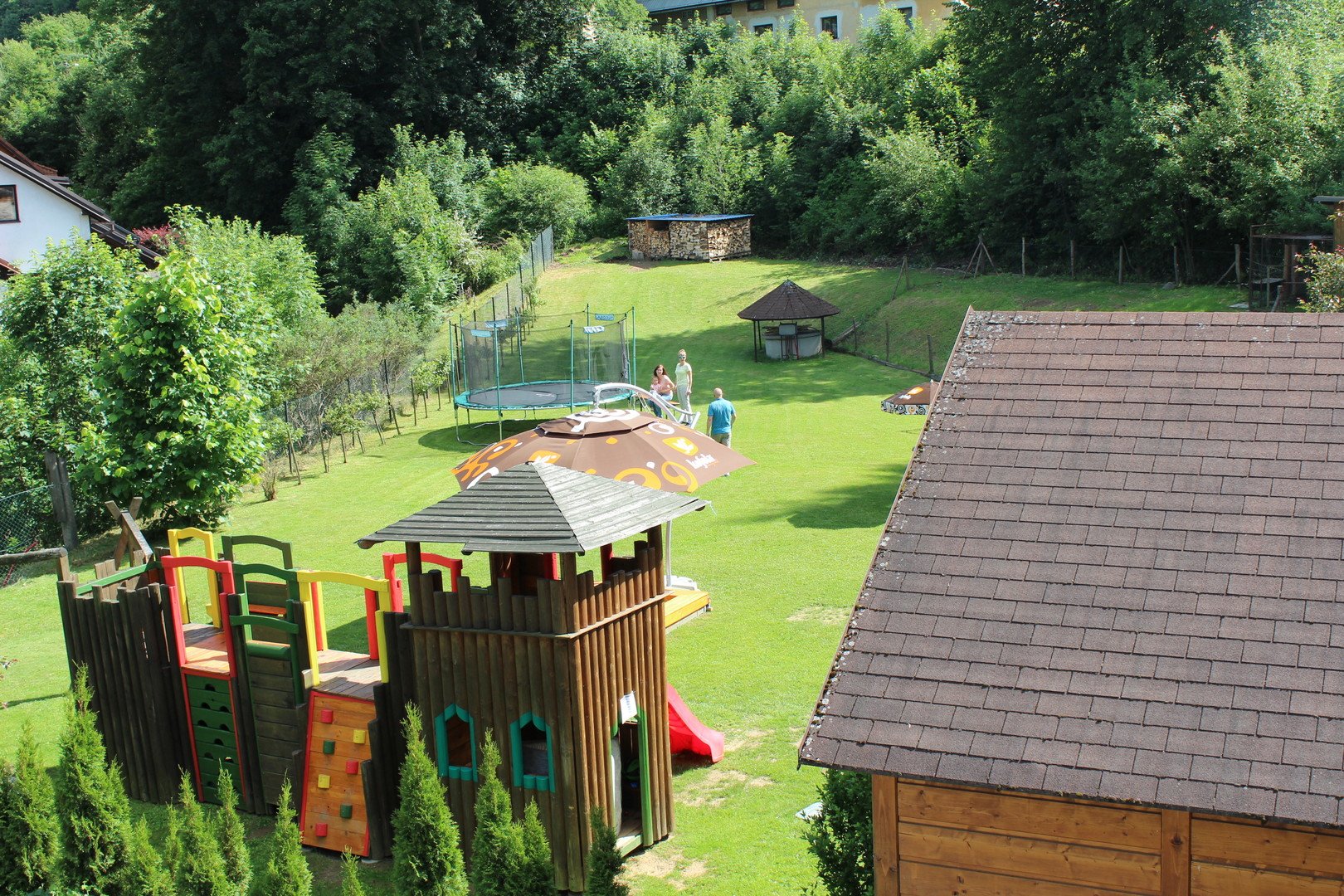 Dětské hřiště, trampolína, pískoviště se slunečníkem, dřevěný hrad, skluzavka, stolní hry; za poplatek finská sauna, masáže; místnost s ochlazovací kádí a sprchou, relaxační místnost s lehátky, zázemí pro kola – servis a údržba, tlaková myčka, kompresor, základní náhradní díly, cyklomapy, půjčovna kol a elektrokol.