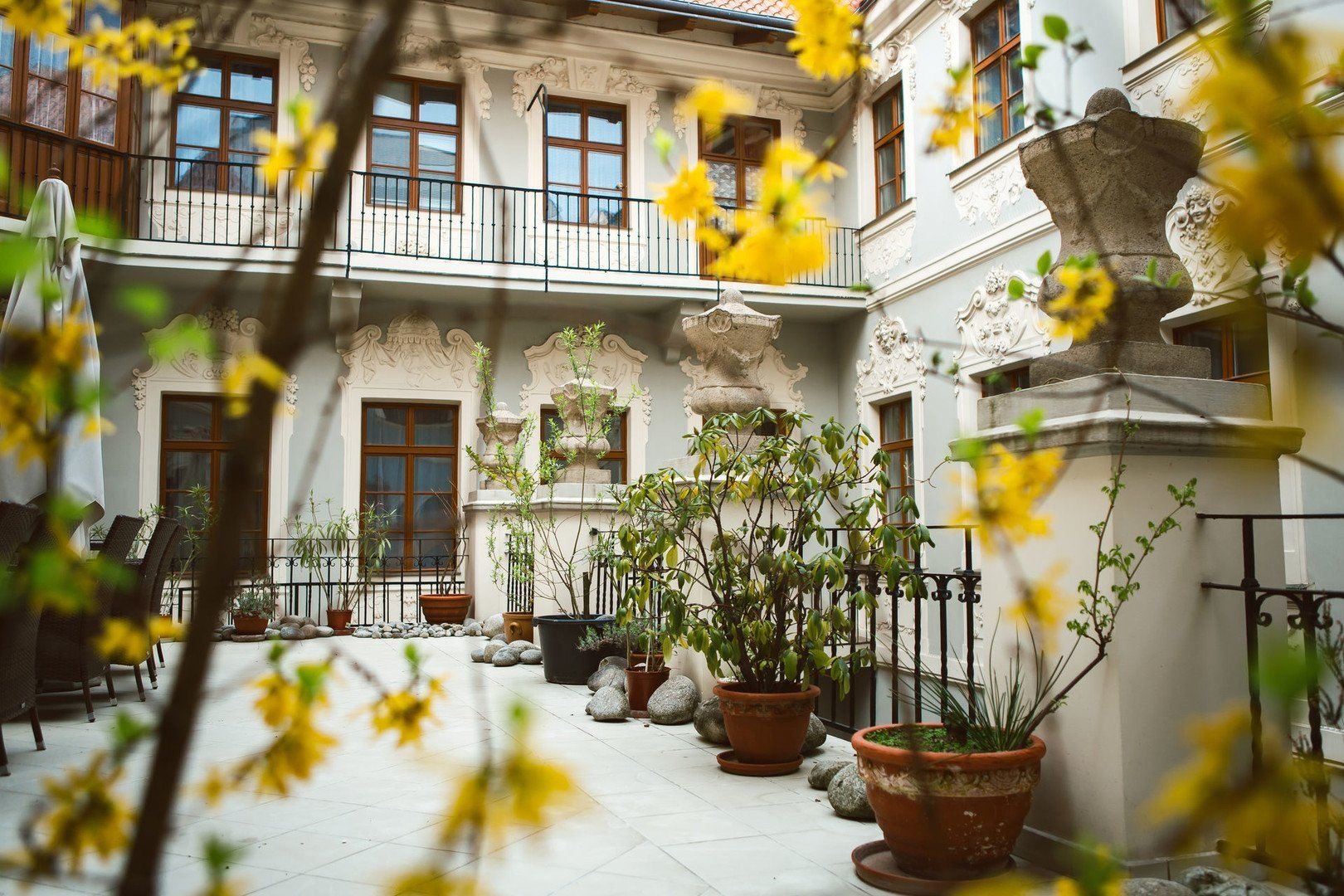 Hotel je vybudován v prostorách starého měšťanského domu v Celetné ulici (50m od Staroměstského náměstí) na Královské cestě.