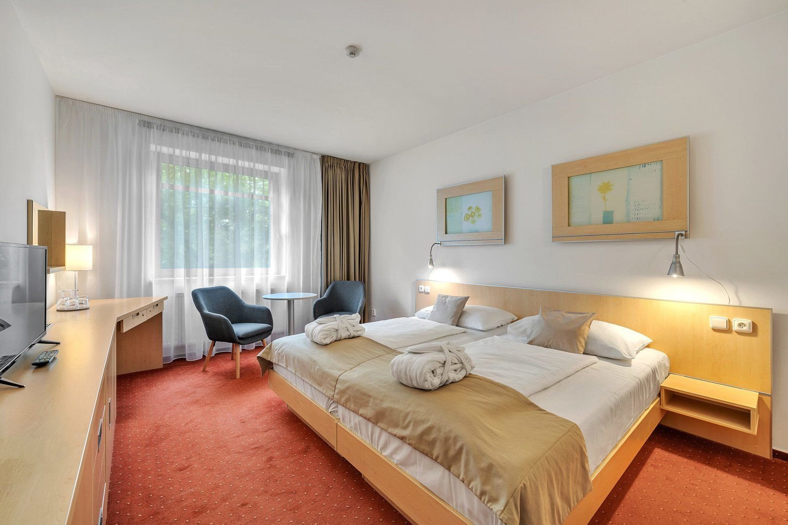 Dvouůžkové pokoje Standard s možností obsazení jednou osobou jsou vybaveny vlastním sociálním zařízením (sprchový kout, WC, vysoušeč vlasů), TV, minibarem, trezorem, župan + pantofle. Wi-Fi připojení v celém areálu hotelu zdarma. Na vyžádání pokoje Superior - čajový a kávový servis s rychlovarnou konvicí, prémiová hotelová kosmetika nebo pokoje Premium - manželská postel King Sige, Nespresso kávovar, prémiová hotelová kosmetika Rituals.