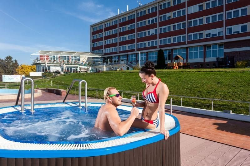 Hotel má 6 podlaží, restauraci, pizzerii, denní kavárnu, bar, taneční kavárnu, saunu, tělocvičnu, venkovní ohniště s posezením, sportovní areál - tenisový kurt s umělým povrchem, 10 minigolfových jamek, stolní tenis, ruské kuželky, volejbalové hřiště, 9-jamkové golfové hřiště s cvičnou loukou, vnitřní cvičná odpaliště a virtuální golfový simulátor, dětské houpačky a prolézačky. V hotelové recepci je možné si zapůjčit ke všem sportovištím nářadí (tenisové rakety, míče, kola, společenské hry aj. nebo zakoupit „sportovní kartu“ (cena karty zahrnuje bazén, saunu, stolní tenis, minigolf, ruské kuželky a pétanque, dítě se slevou 50%). V golfovém klubu je možné si zapůjčit golfové hole, míčky a objednat si lekci s trenérem golfu. Dětský koutek, Wi-Fi free připojení v celém hotelu, na pokojích i na přilehlém koupališti, 2 venkovní vyhřívané whirlpooly, houpačky a průlezky pro děti.