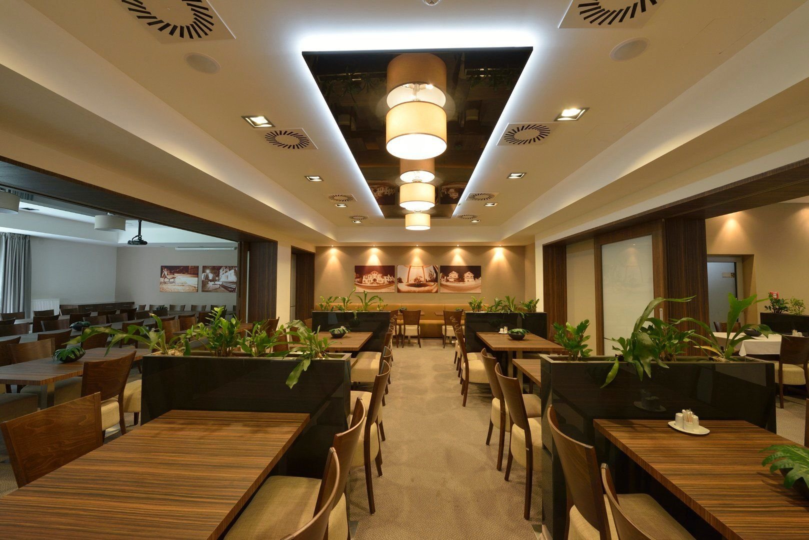 Recepce, restaurace, Café, bazén, saunový svět, vlastní fitcentrum, relaxační centrum - perličkové koupele se zábalem, hydromasáže, suché uhličité koupele, kyslíková terapie, inhalace, slatinné obklady, různé druhy masáží. Taneční večery s živou hudbou v salonku restaurace. Hotel zajišťuje pravidelnou dopravu do centra města a zpět.