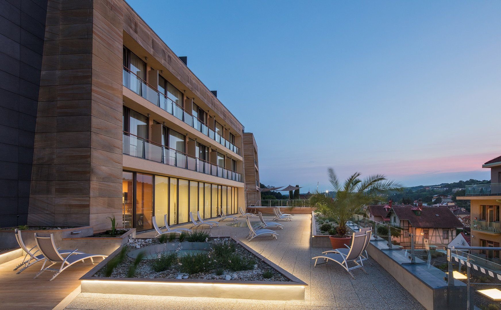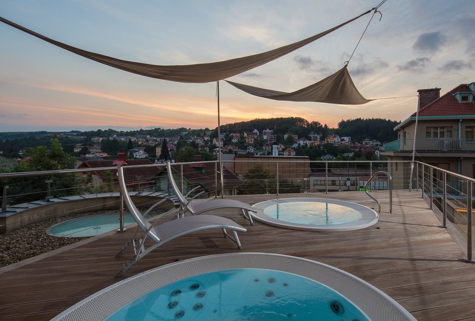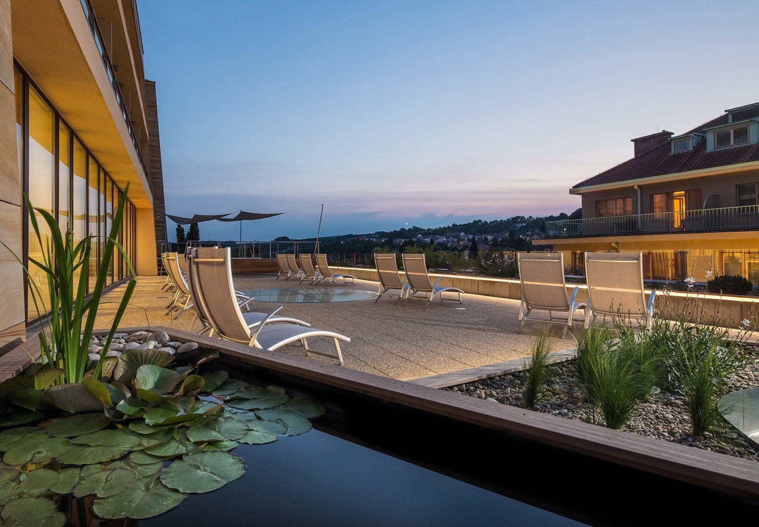K dispozici je stylová Francouzská restaurace, noční klub s atmosférou první republiky, největší a nejmodernější hotelové wellness centrum v Luhačovicích – v rámci ubytování lze volně využívat bazén s protiproudem, masážními tryskami a masážní hlavicí, nový venkovní whirlpool, Kneippův chodník, saunový svět (laconium, parní, bylinková, solná a finská sauna) ochlazovací sprchy, ledová studna, relaxační vyhřívané lavice a odpočinkové zóny, fitness. Z tradičních lázeňských procedur jsou nabízeny minerální koupele v přírodní léčivé uhličité vodě, hydromasáže a uvolňující masáže.
