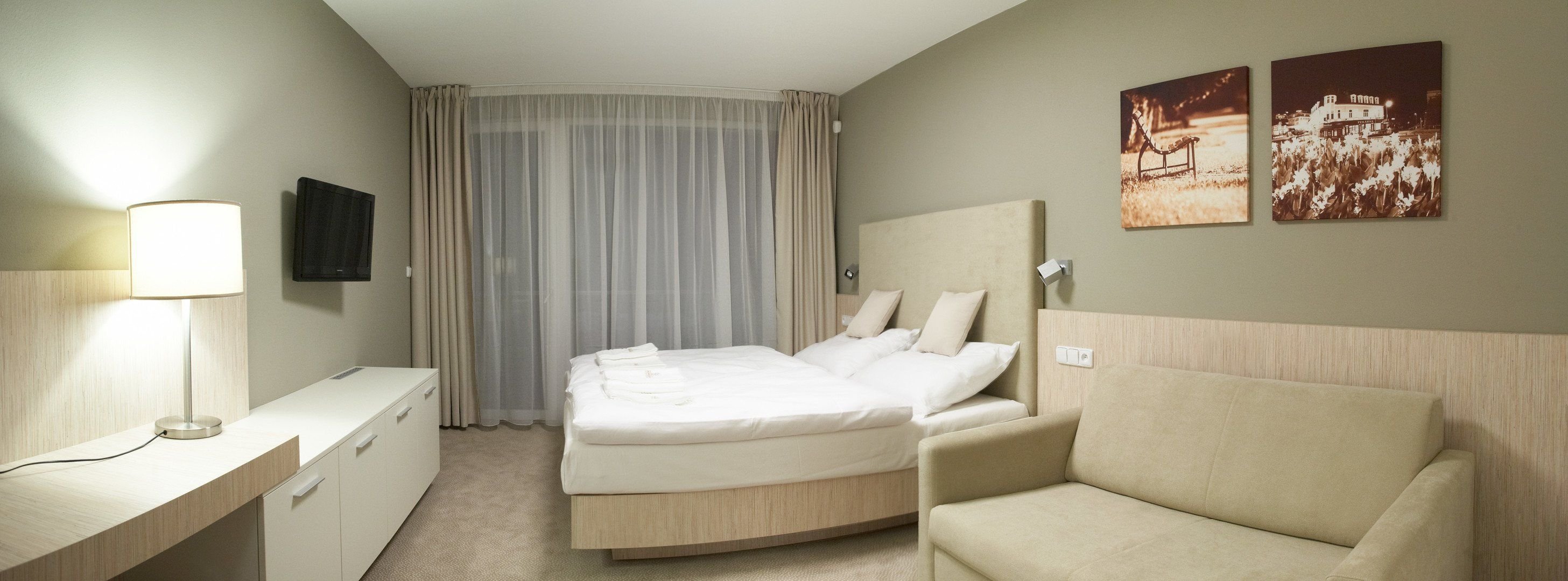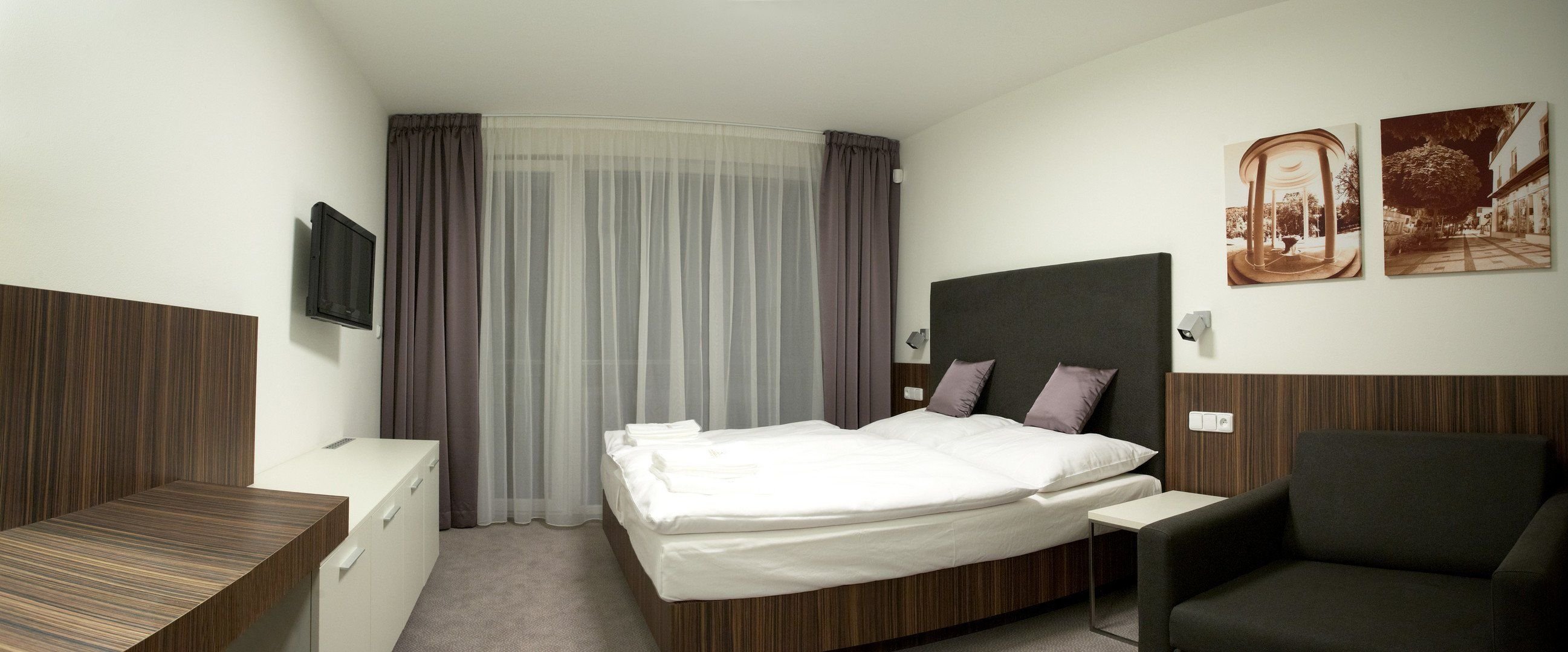 Dvoulůžkové pokoje se sprchou a WC, balkonem, s možností přistýlky, na pokoji je SAT/TV, telefon, WiFi a minibar