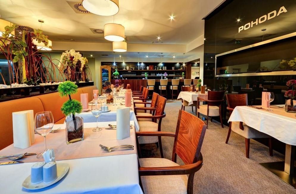 K dispozici je restaurace, bazén, saunový svět, vlastní fitcentrum, relaxační centrum - perličkové koupele se zábalem, hydromasáže, suché uhličité koupele, kyslíková terapie, inhalace, slatinné obklady, různé druhy masáží. Taneční večery s živou hudbou v salonku restaurace. Dětský ráj - nově vybudované dětské hřiště s odpočinkovou zónou, posezením i občerstvením v podobě "Pohodové osvěžovny". Hotel zajišťuje pravidelnou dopravu do centra města a zpět.Hotel má k dispozici vlastní úschovnu kol, která je poskytována Zdarma.