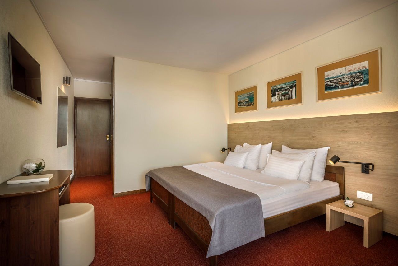 Dvoulůžkový pokoj classic: vybavený starším nábytkem, vlastním příslušenstvím (koupelna, WC), TV, klimatizace a balkon s výhledem do okolíRodinný pokoj: vybavený vlastním příslušenstvím (koupelna, WC), TV, klimatizací, minichladničkou a balkonem.