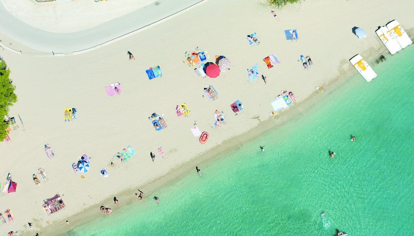 Oblázková, místy skalnatá pláž s travnatými plochami na slunění je vzdálená asi 200 metrů od apartmánů. Krásná pláž s hrubým pískem a pozvolným vstupem do vody, vhodná i pro děti, se nachází asi 500 metrů od apartmánů.
