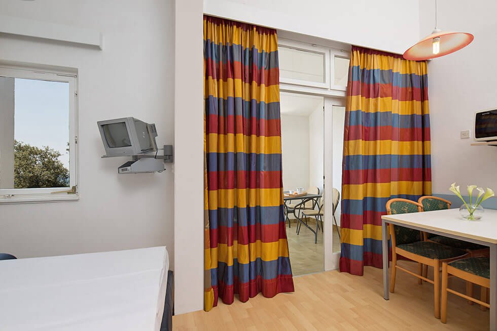 Areál nabízí vybavené apartmány různých typů a vybavení.SUNSET - první řada apartmánů, které jsou nejblíže k moři, navíc jsou vybavené TV a mikrovlnou troubou.STANDARD BASIC - nerenovované apartmány, postarší nábytek. STANDARD PLUS - částečně renovované, jsou bez TV a mikrovlnky. Všechny apartmány jsou vybaveny vlastním příslušenstvím, kuchyňským koutem s vařičem, základním nádobím a lednicí v předsíni, ložním a koupelnovým prádlem (utěrky doporučujeme vlastní) a lodžií nebo terasou. Apartmány nemají klimatizaci.