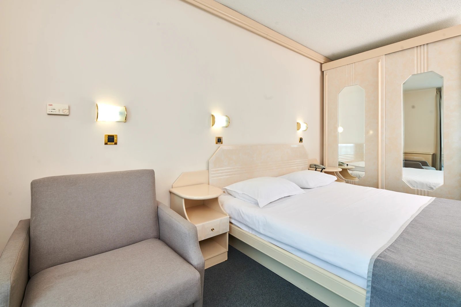Oblíbený hotel Gran Vista se nachází na okraji města Poreč, konkrétně 5 km od jeho centra. Přibližně 10 km od Poreče se nachází město Vrsar a přibližně 35 km město Rovnij. Samotný hotel se nachází na mírném kopci, ze kterého je krásný výhled na moře a do okolí.