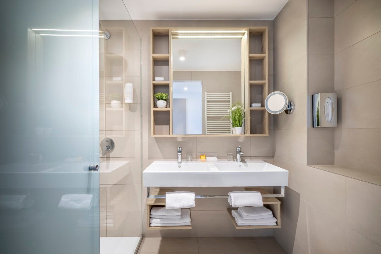Klimatizované pokoje jsou vybaveny vlastním soc.zařízením (koupelna se sprchou, WC, vysoušeč vlasů), TV/Sat., telefonem, minibarem, trezorem a Wi-Fi.