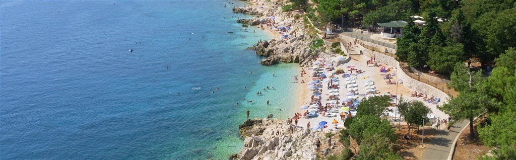 Přírodní kamenitá i oblázková pláž je vzdálena přibližně 70 m od hotelu. Lehátka a slunečníky za poplatek. Další upravené pláže všech typů podél celého střediska.