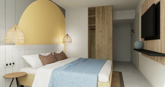 Rekonstruované pokoje v celém rozšířeném areálu.Klimatizované dvoulůžkové pokoje (2+0, 2+1) s možností přistýlky a vlastním soc.zařízením (koupelna, fén, WC). Dále jsou pokoje vybaveny TV, telefonem, trezorem a Wi-Fi. Většina pokojů má balkon. Jednolůžkové pokoje v hotelu nejsou k dispozici.