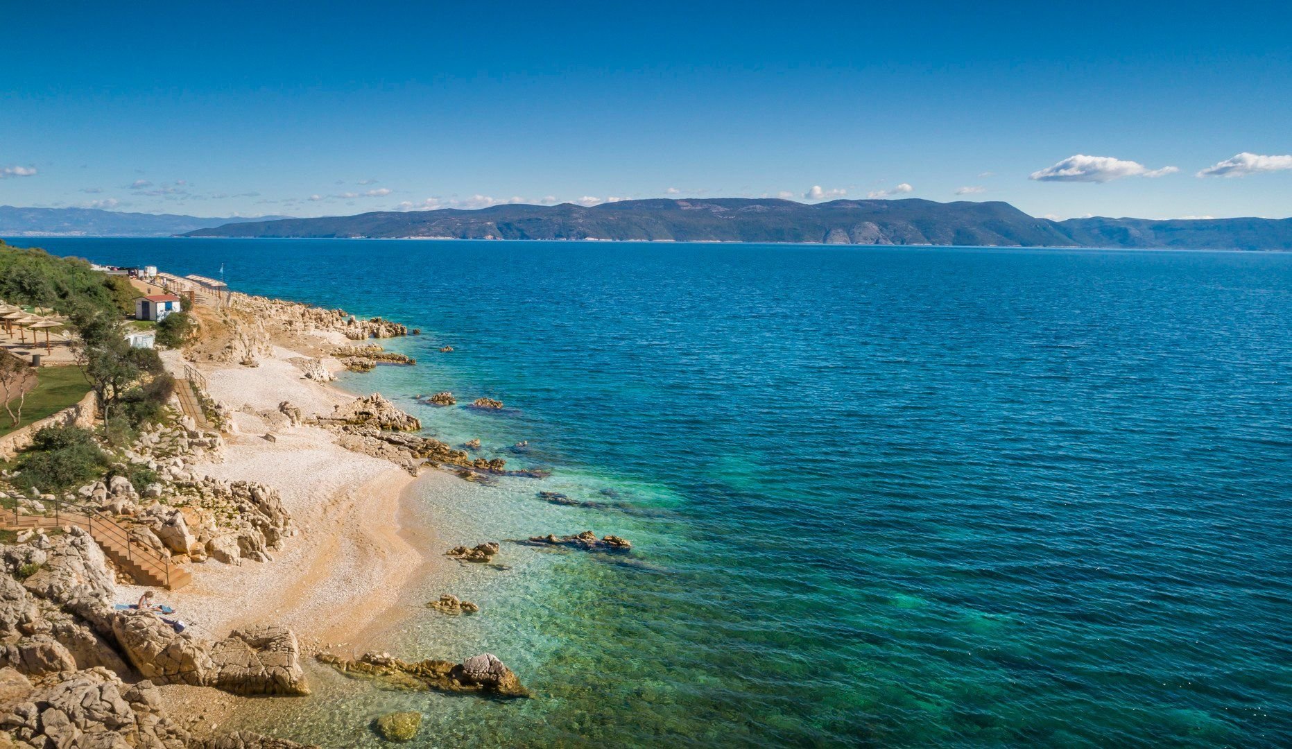 V bezprostřední blízkosti hotelu se nachází několik oblázkových pláží, menších i větších, vhodných pro rodiny s dětmi i příznivce šnorchlování.Na pláži slunečníky a lehátka (za poplatek)