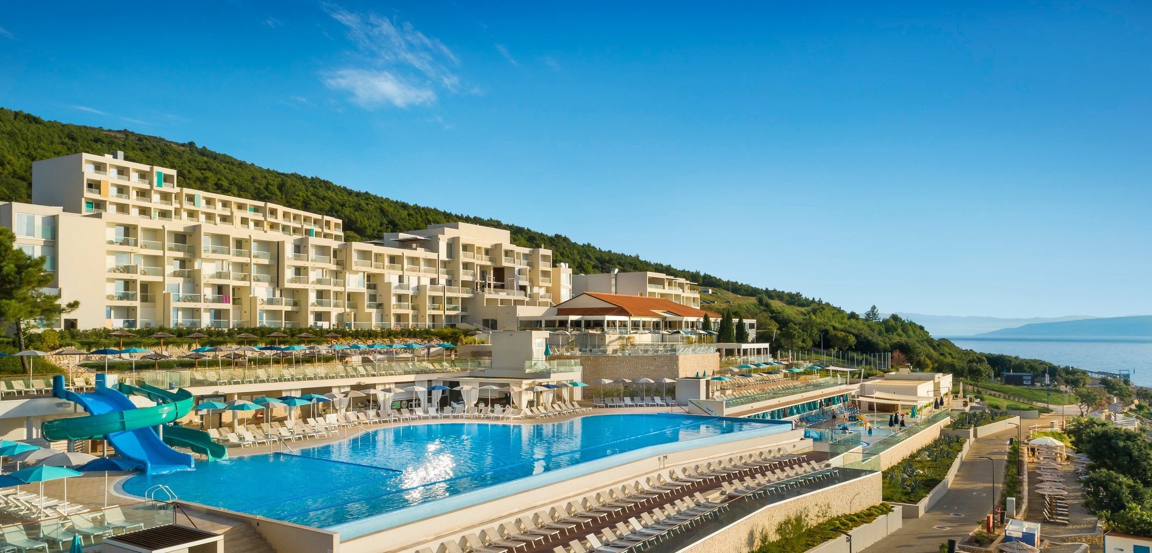 Hotel má jedinečnou polohu na břehu průzračně čistého moře s úžasným výhledem na zátoku.